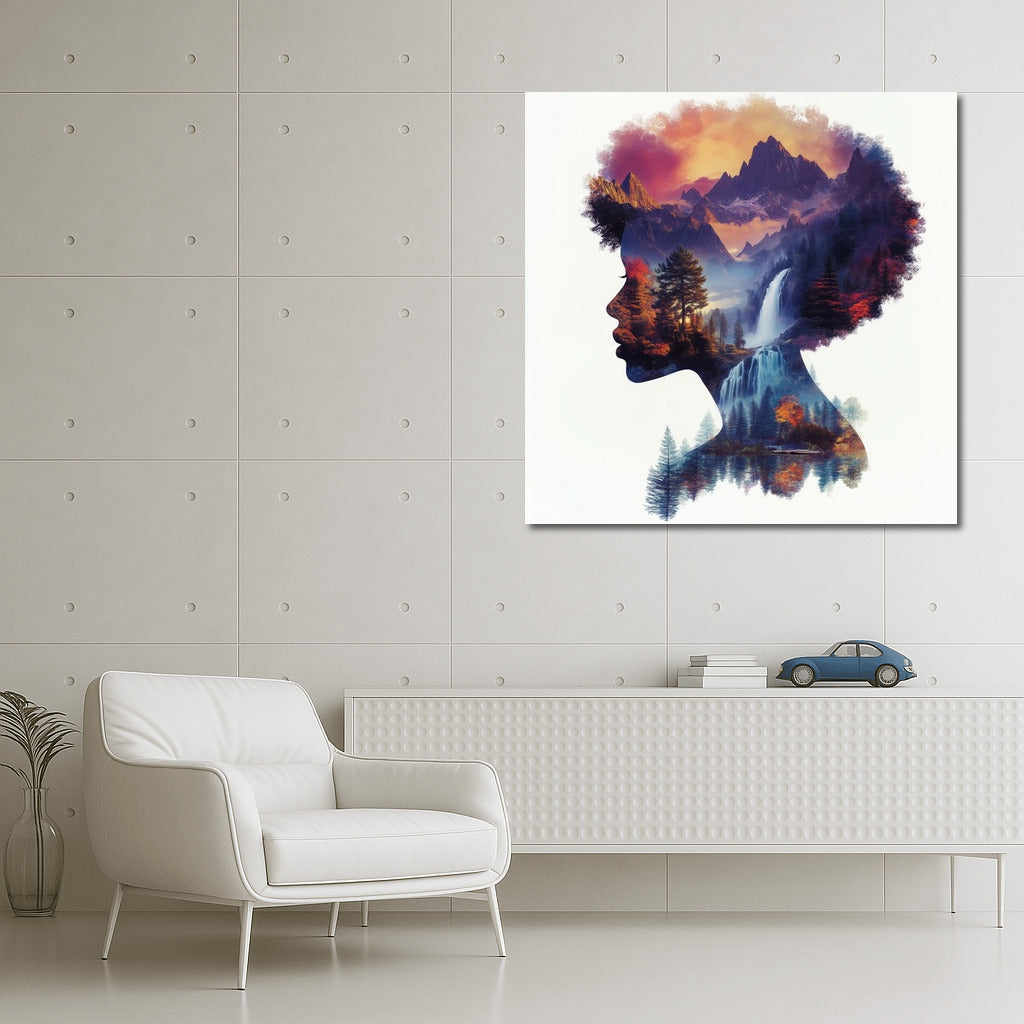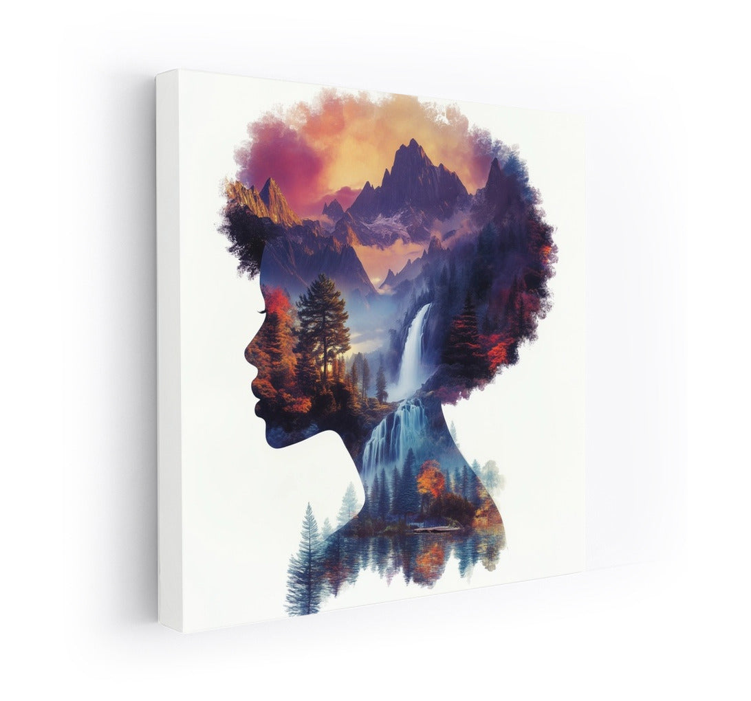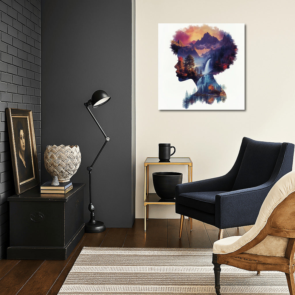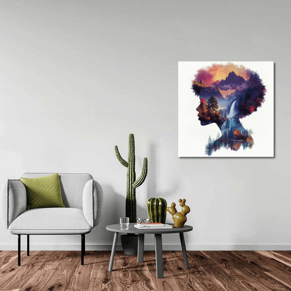 Immerse yourself in the magic of nature and imagination with this poster: a silhouette filled with mountains and waterfalls will become the highlight of your interior. See more from the collection: Mixed Wall Art