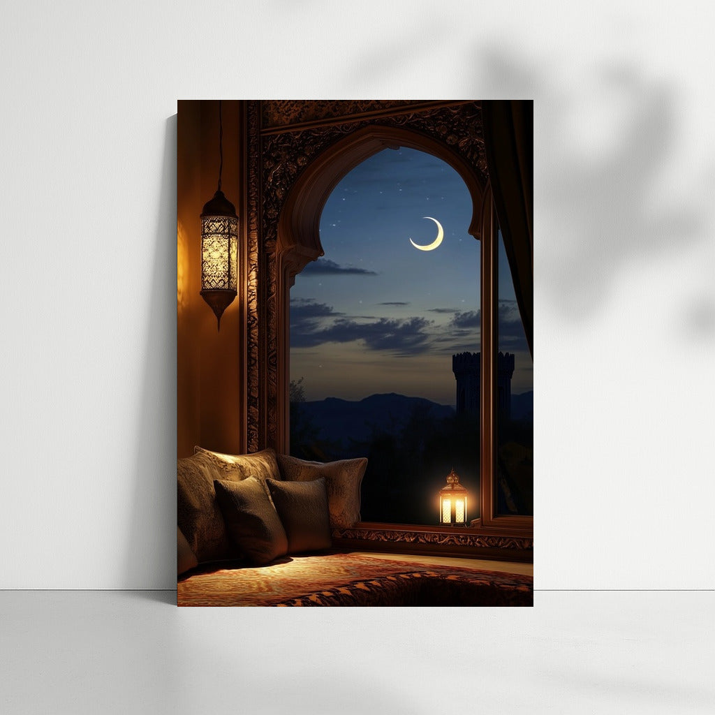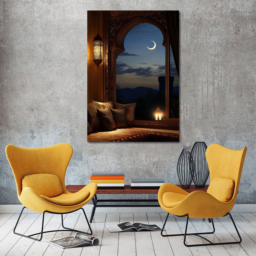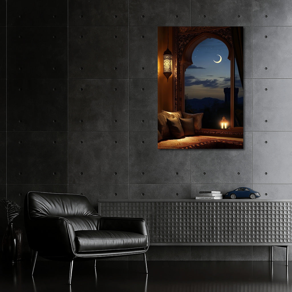 Moonlit night in oriental style: the poster immerses you in an atmosphere of silence and dreams. Ideal wall art for coziness. See more from the collection: Mixed Wall Art