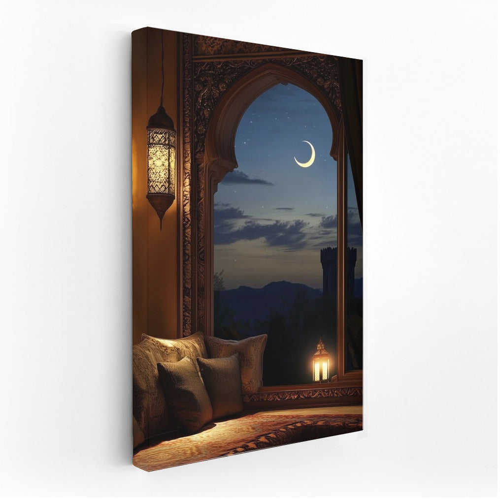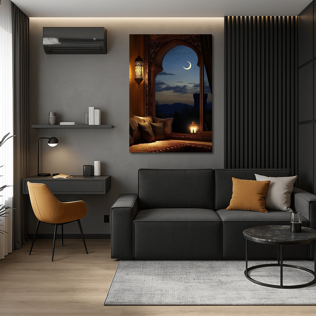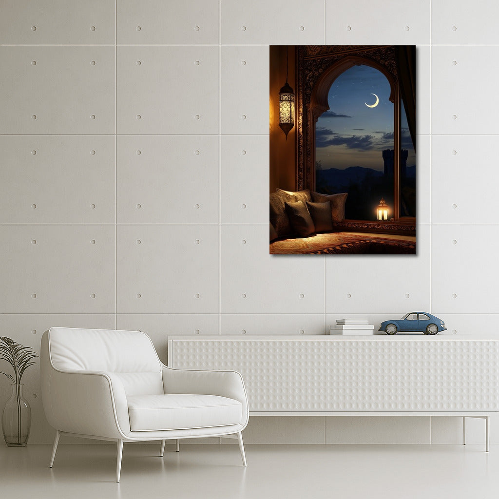 Moonlit night in oriental style: the poster immerses you in an atmosphere of silence and dreams. Ideal wall art for coziness. See more from the collection: Mixed Wall Art