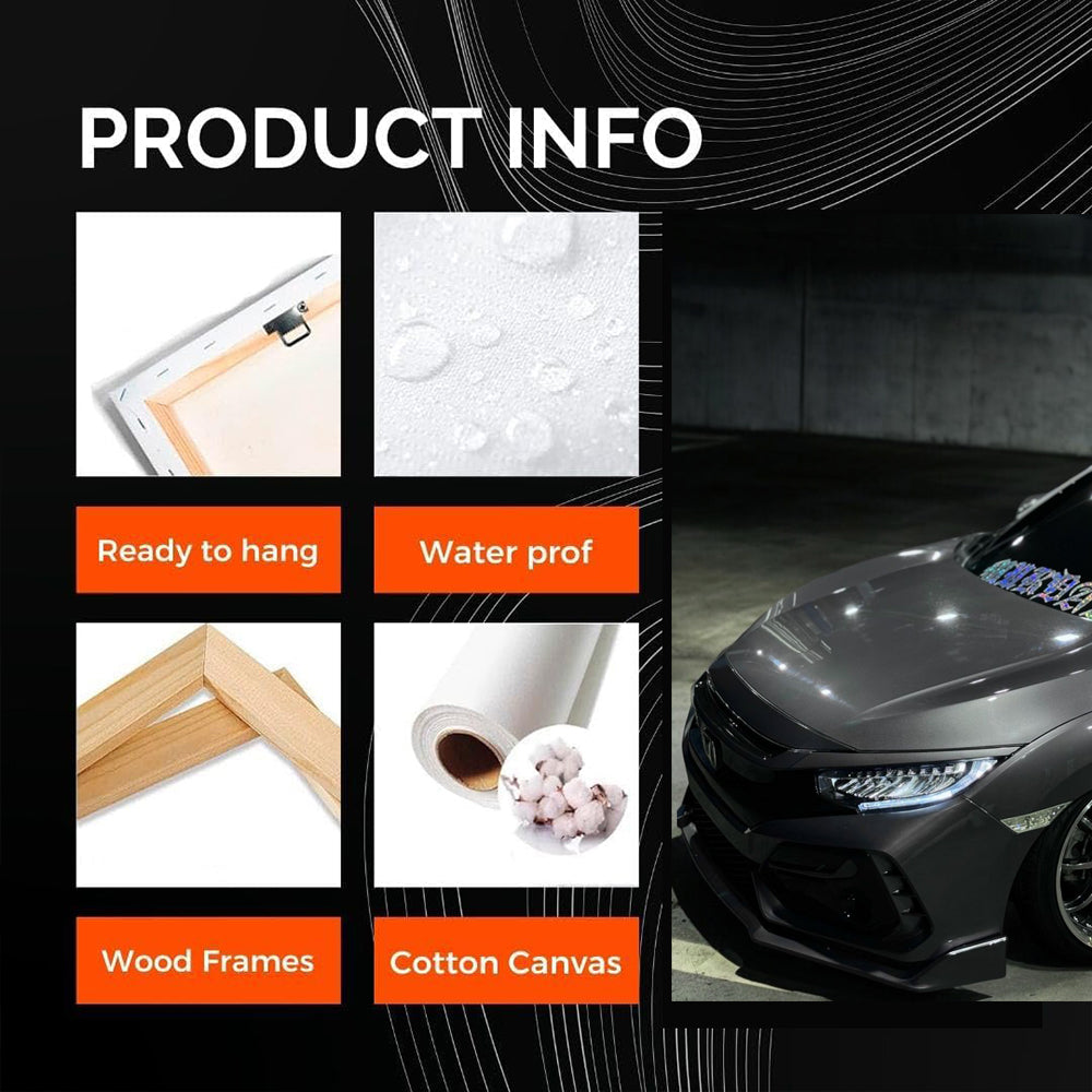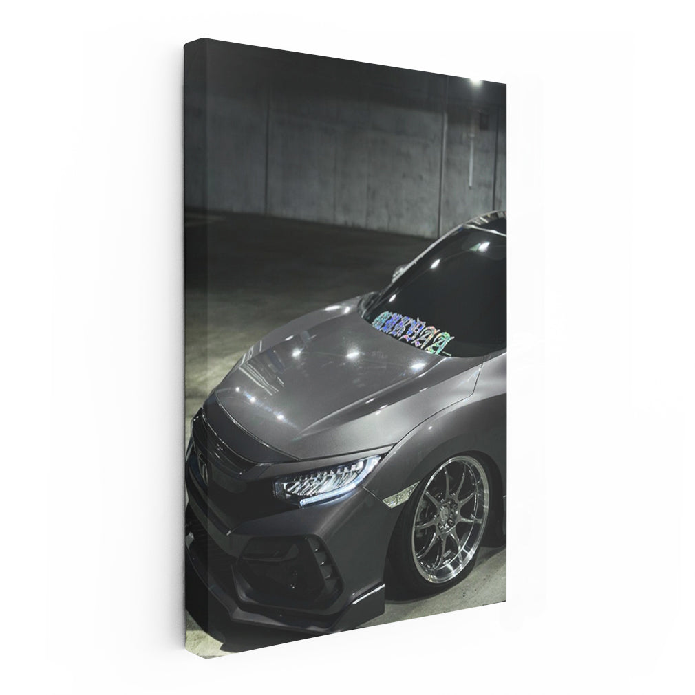 This poster is a blast for any garage! The silver Honda Civic in the painting looks like it's ready to take off. Wall art that will add some sass and speed to your space. For true car fans who appreciate style and power! See more from the collection: Honda Art