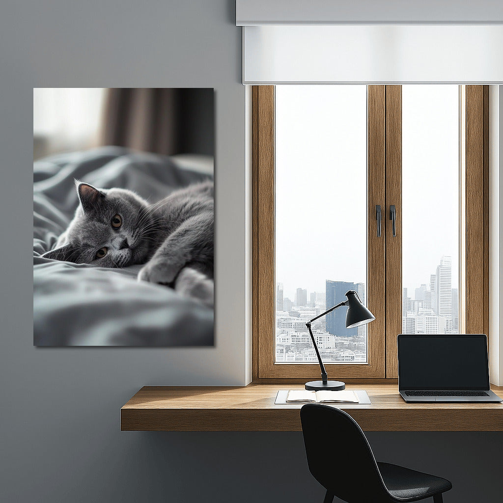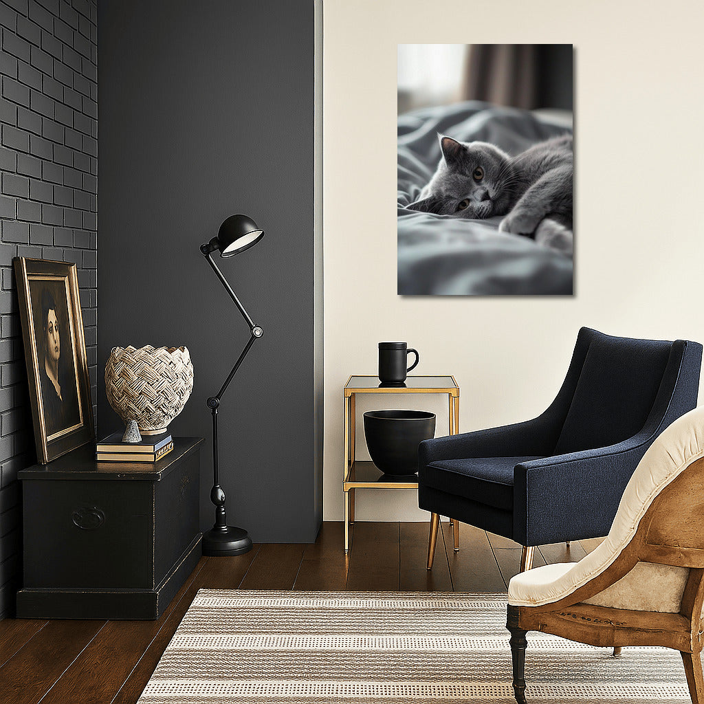 The soft look of a gray cat enlivens your interior. A poster that will add coziness and tranquility to your home. Wall art. See more from the collection: Animals Art