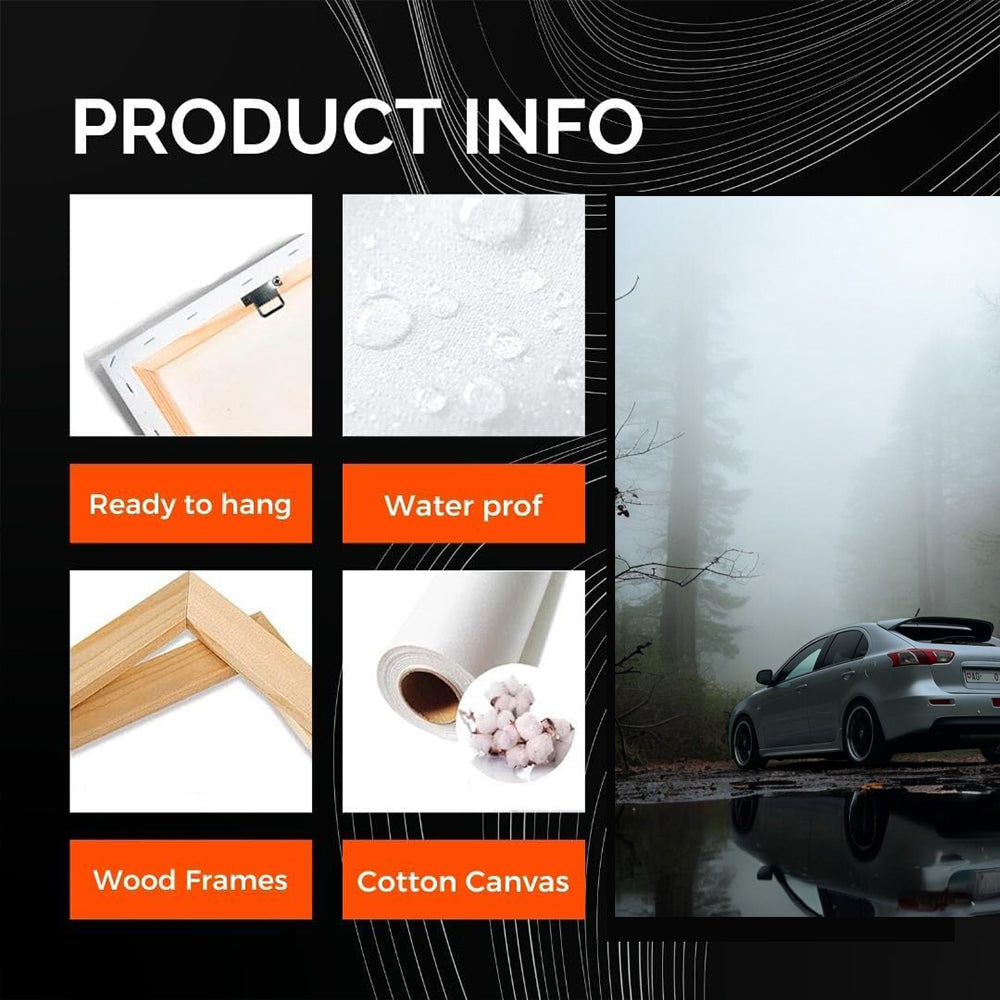 Silver Mitsubishi Lancer in Fog - Sleek and Powerful Wall Art