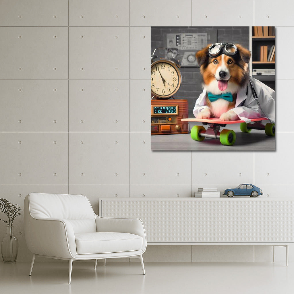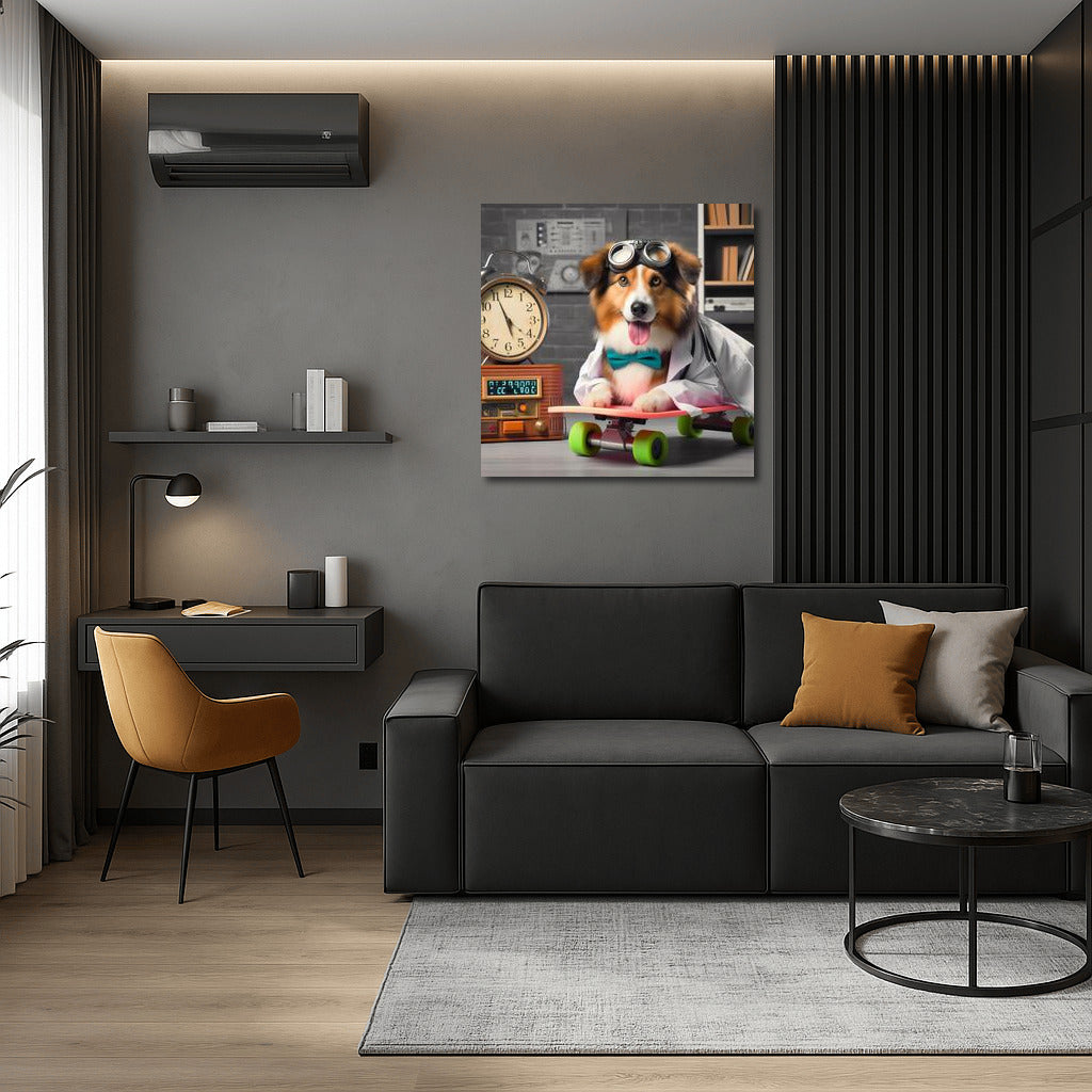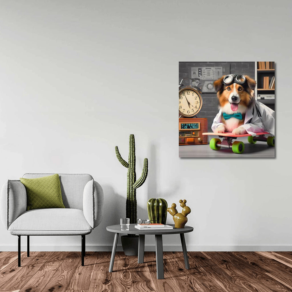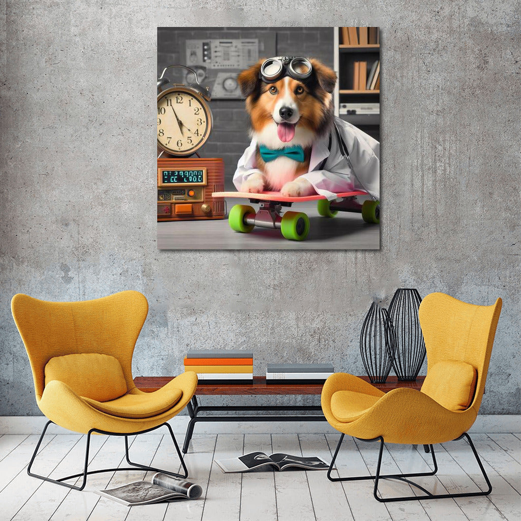 Skateboarder with Glasses: The Scientist Dog on Wheels Wall Art