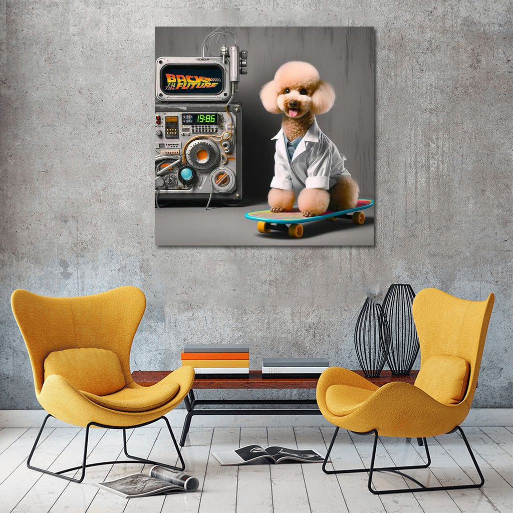 Skateboarding Scientist Poodle: Back to the Future Time Travel Wall Art