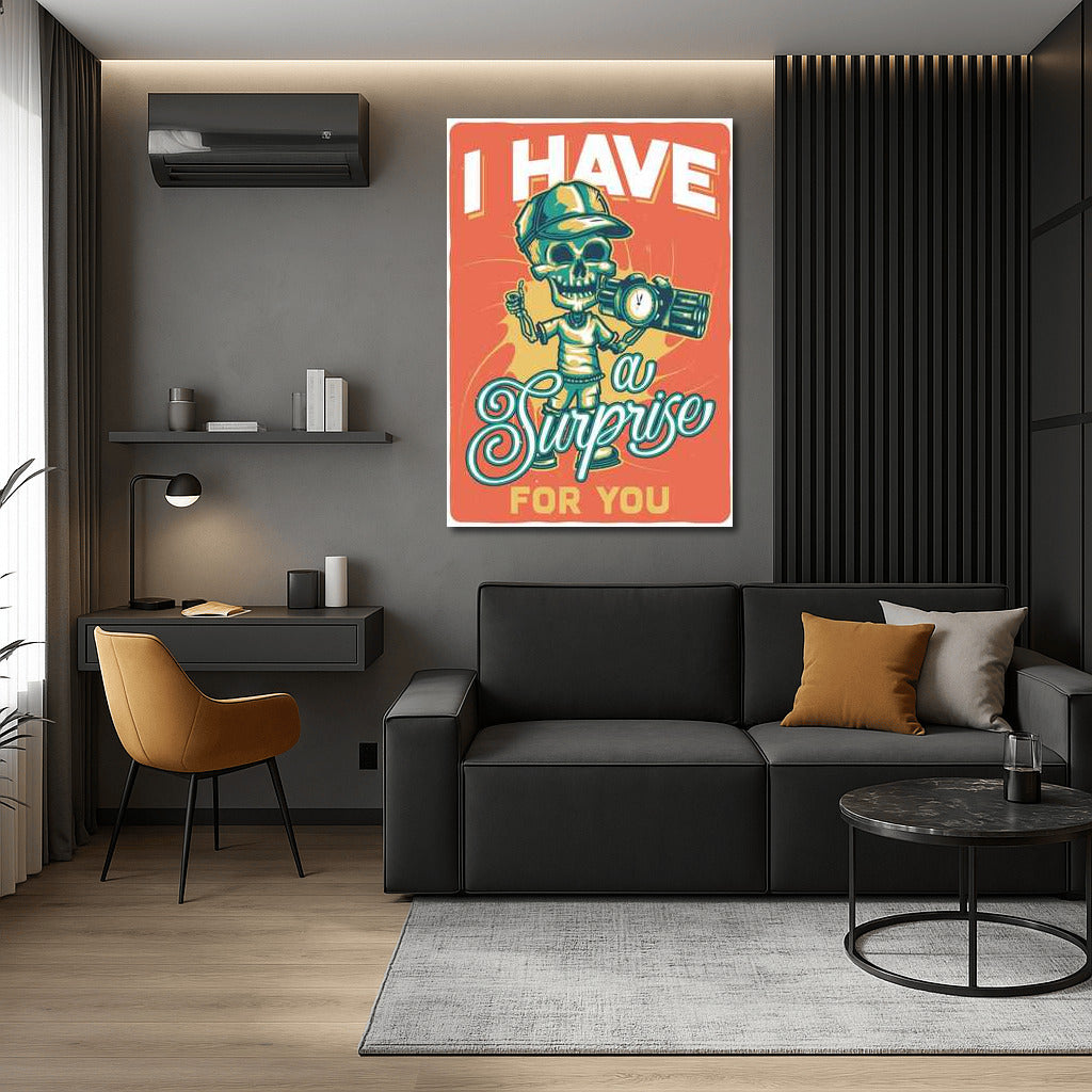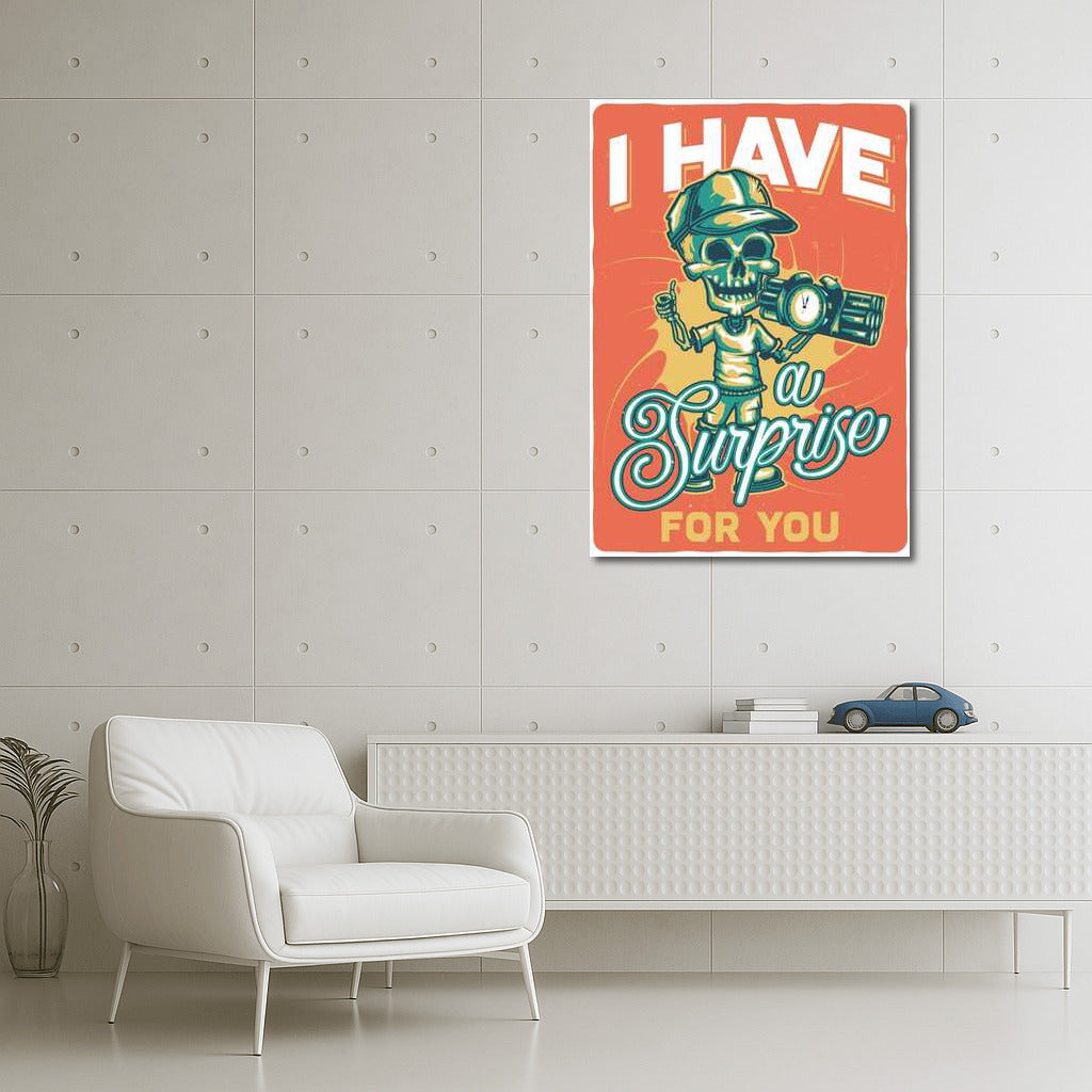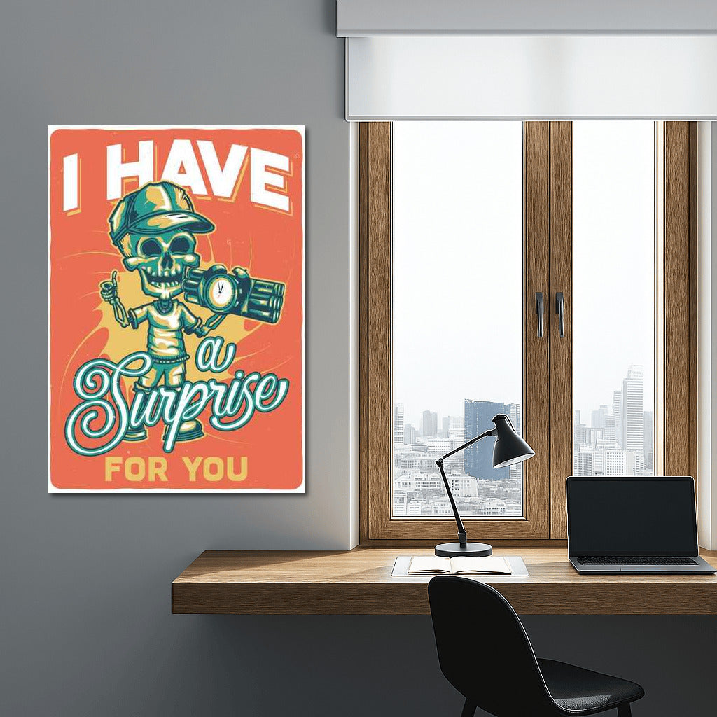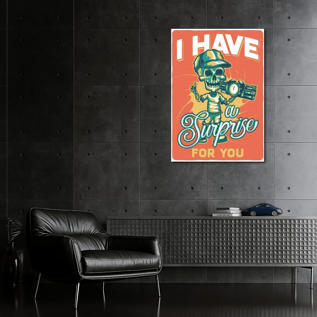A poster with a sparkling sense of humor: a skeleton in a cap with a watch surprise. The perfect wall art for your Man Cave! See more from the collection: Man cave Art