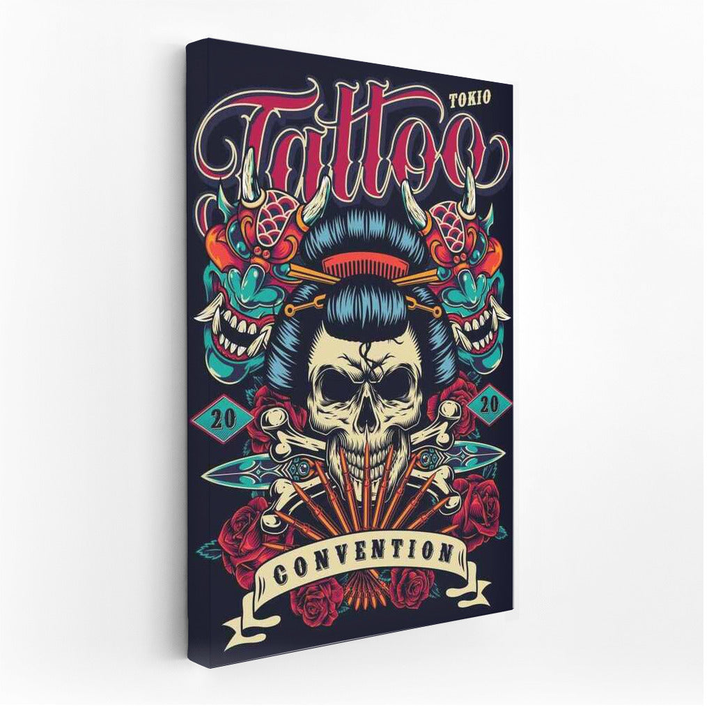 Skull and Masks: Vivid Tattoo Design Wall Art