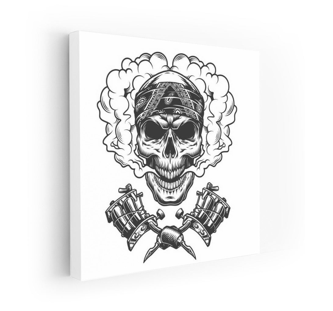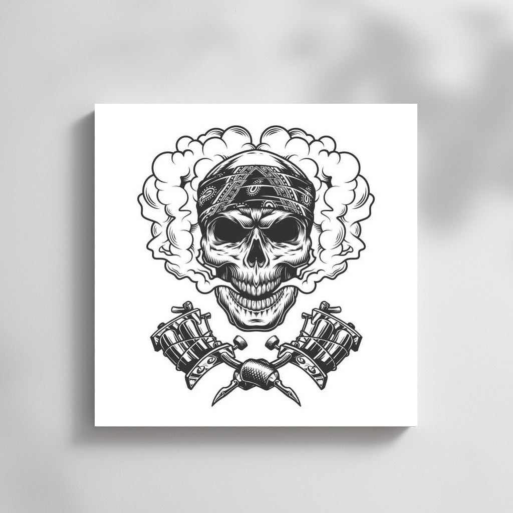 Skull in Bandana with Tattoo Machines: Rebellious Tattoo Masterpiece Wall Art