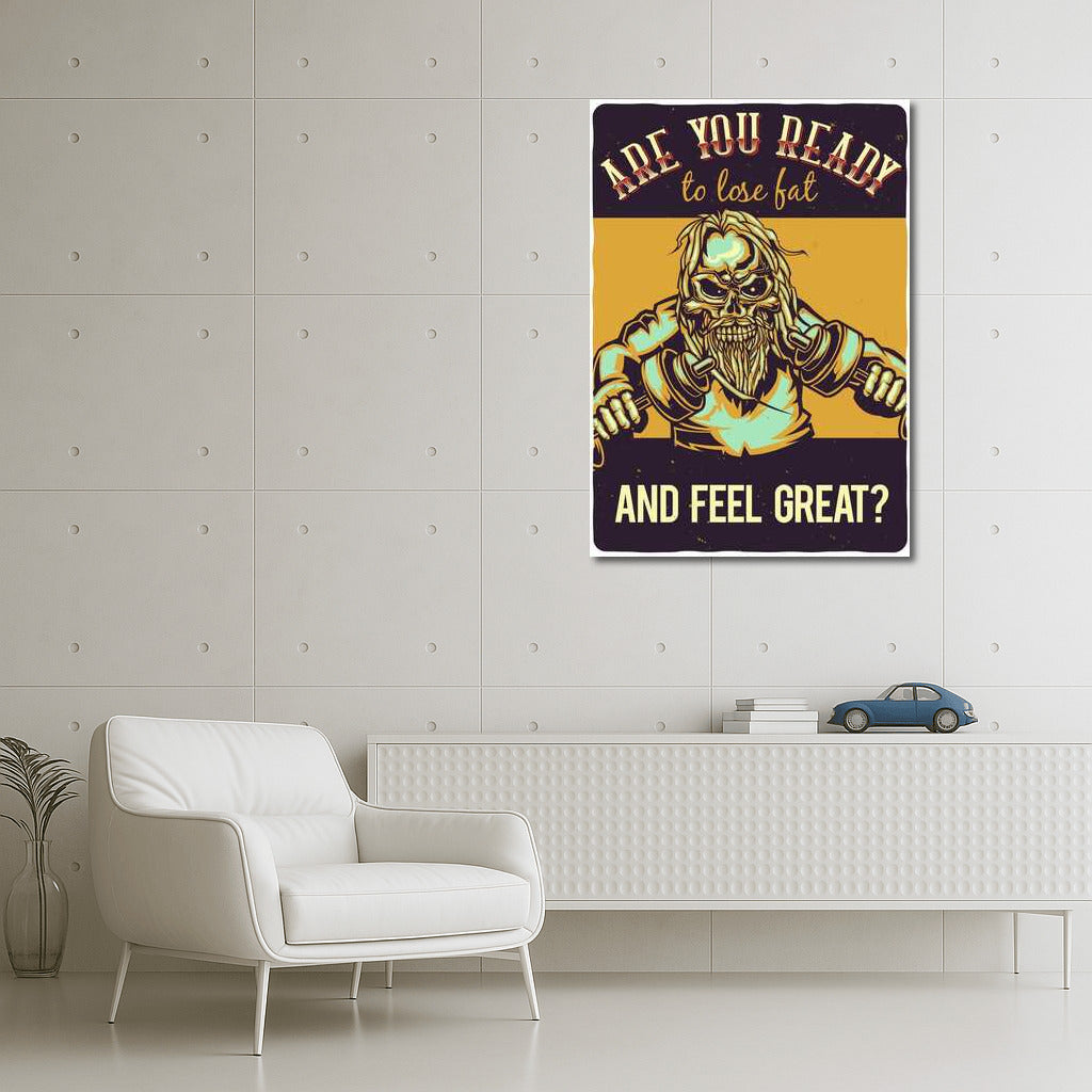 Poster for Man Cave: Motivating Skull in Workout. Feel the drive and energy with this wall art! See more from the collection: Man cave Art