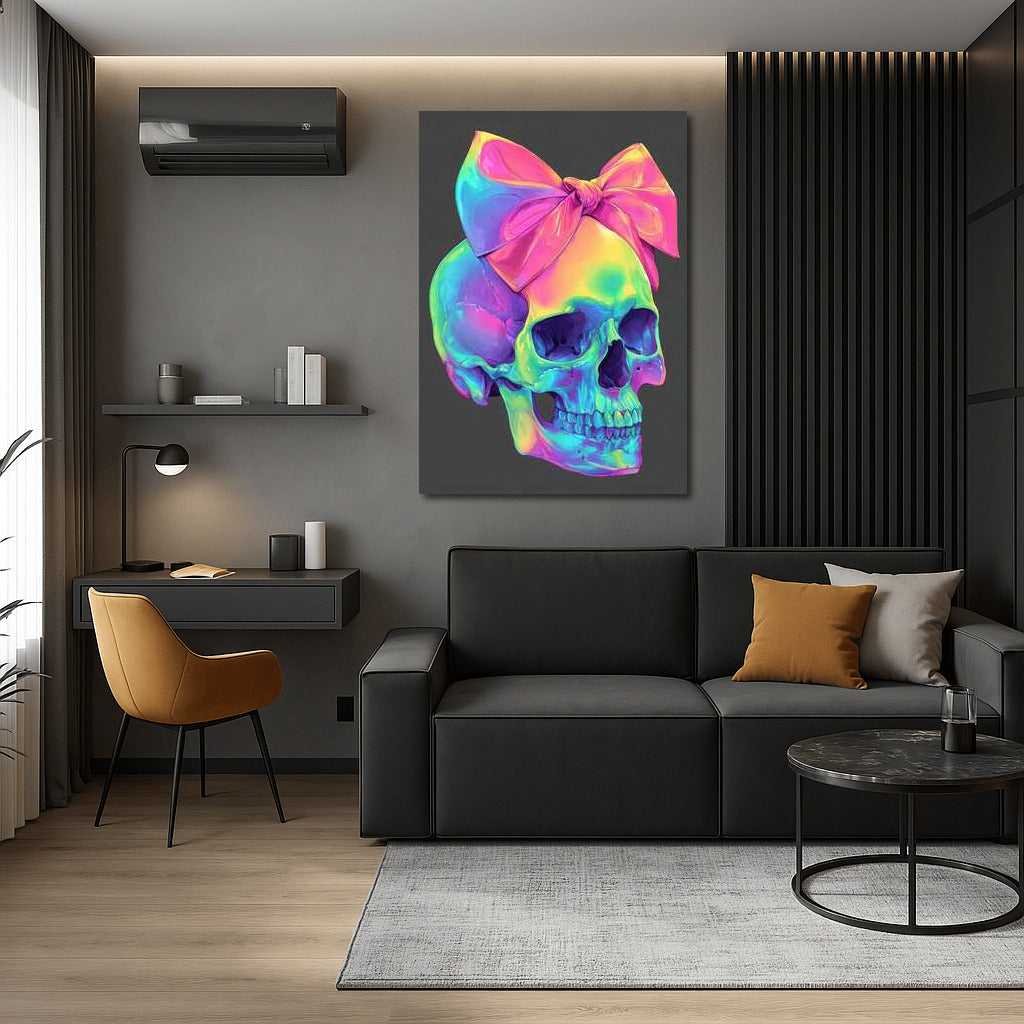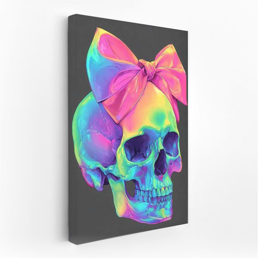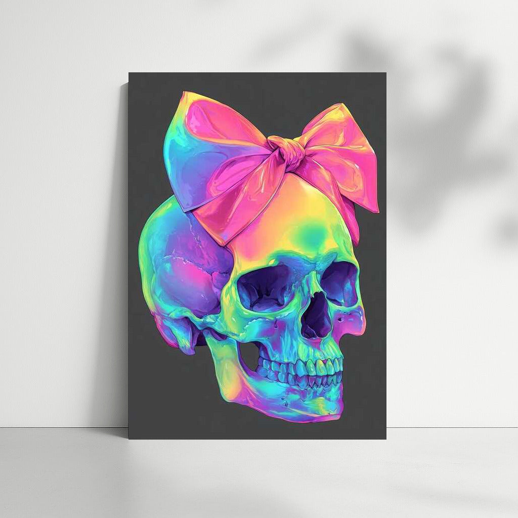Vibrant Skull and Bow Painting: A combination of mystery and joy. Decorate any space with vibrant wall art. See more from the collection: Skull Art