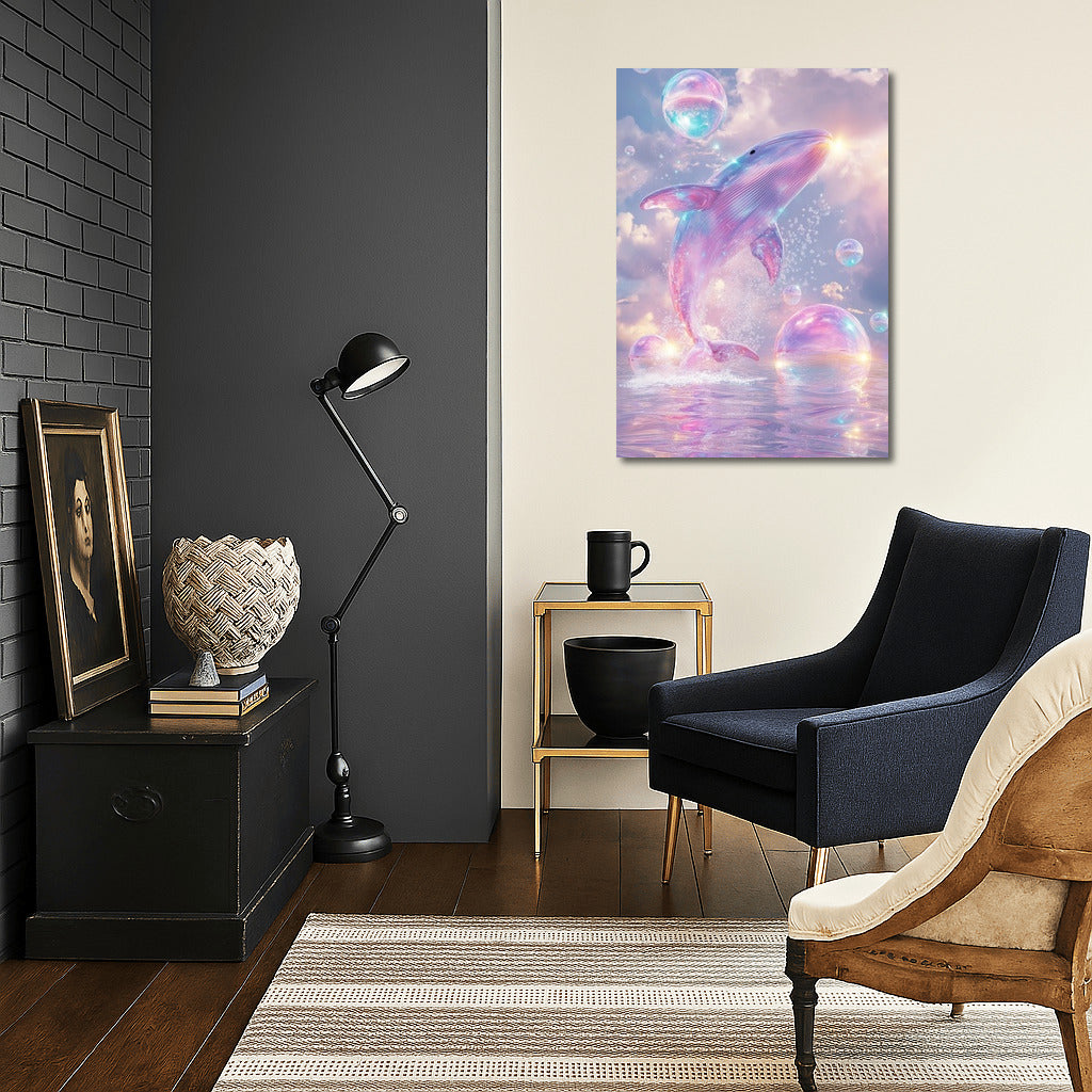 Fantastic whale in clouds and bubbles - magic and dreams in one poster. Add magic to your wall art! See more from the collection: Mixed Wall Art