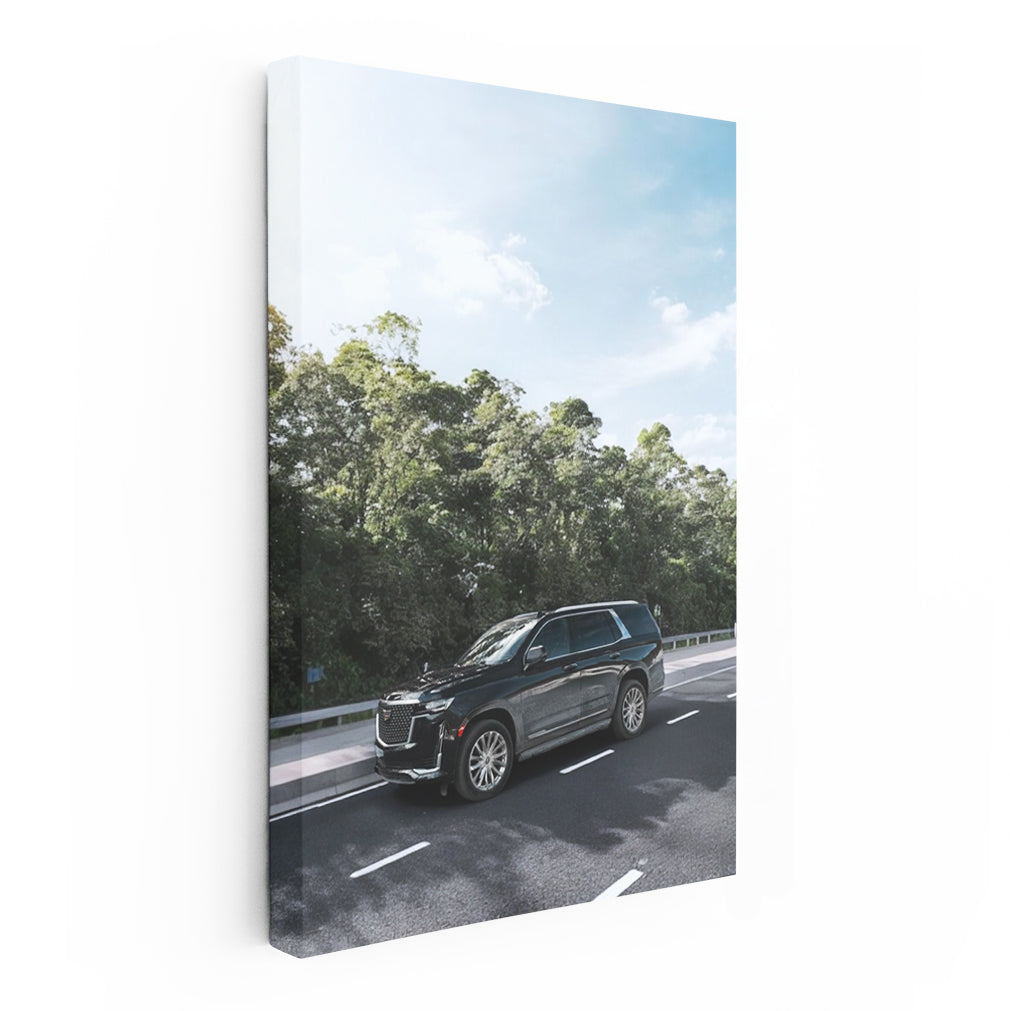 Sleek Black Cadillac Cruising Highway - Pure Luxury Wall Art