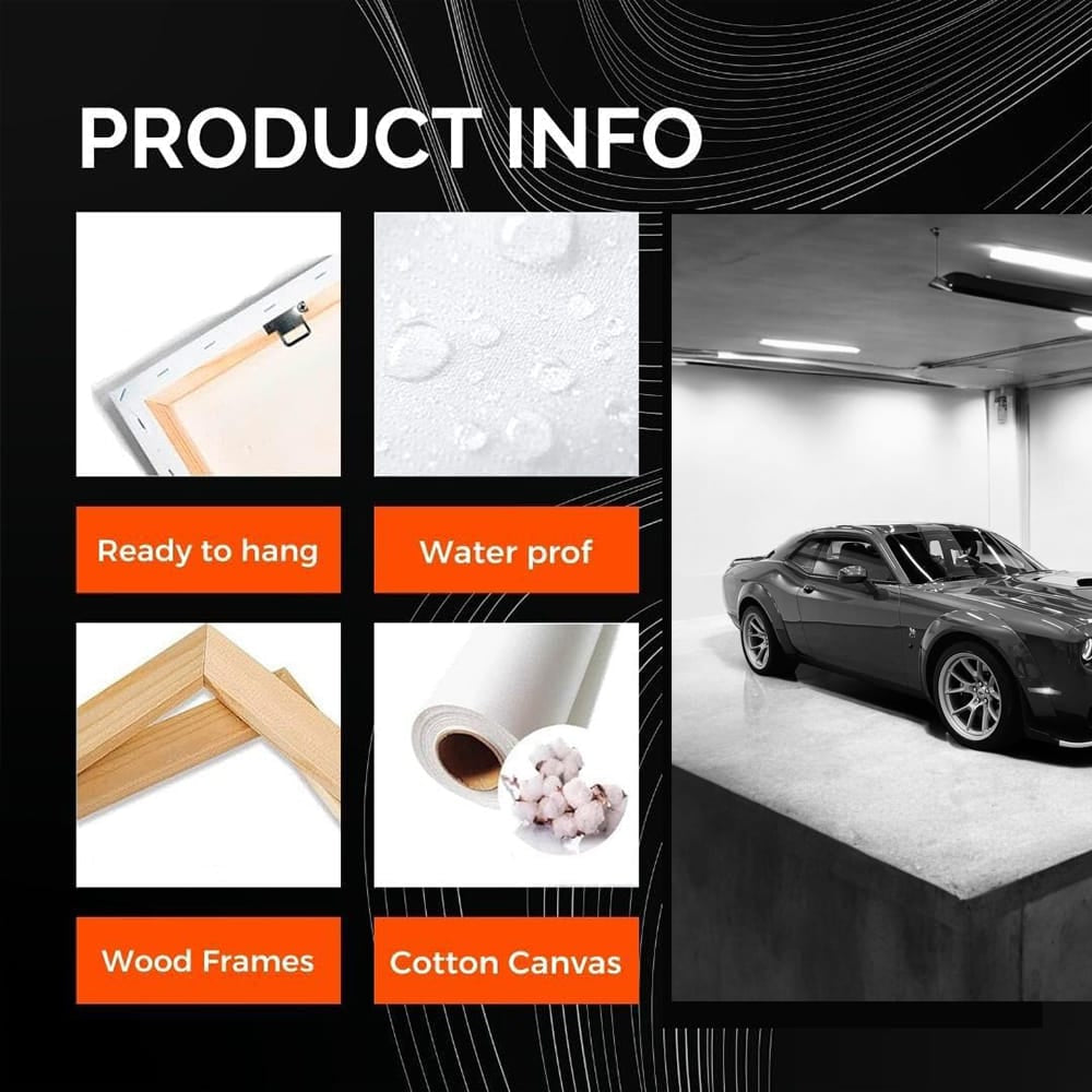 This poster with a Dodge Challenger in gray is just fire! Wall art for true connoisseurs of power and style. This car, as if it came from a movie screen, now decorates your wall. Power, style and adrenaline in every line. See more from the collection: Dodge Art