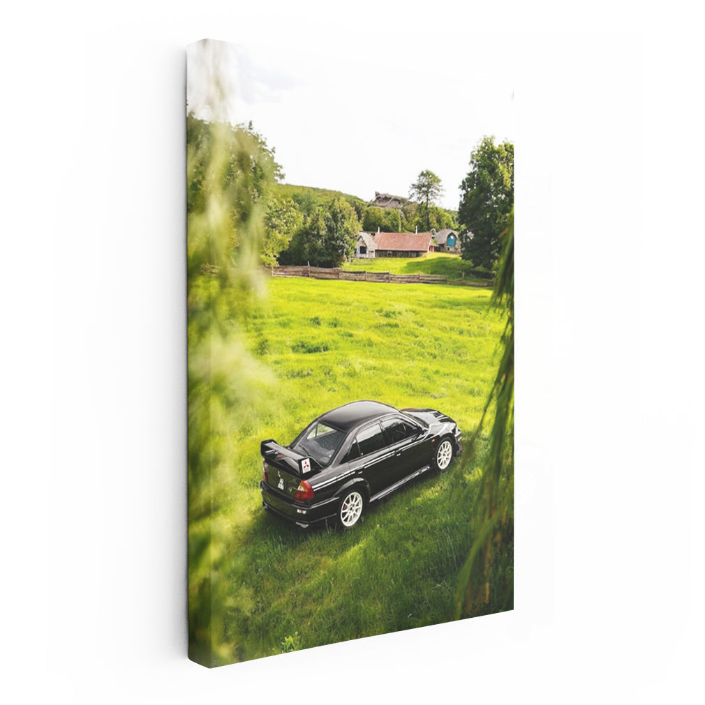 Sleek Mitsubishi Lancer in Village - Black Beauty on Wheels Wall Art