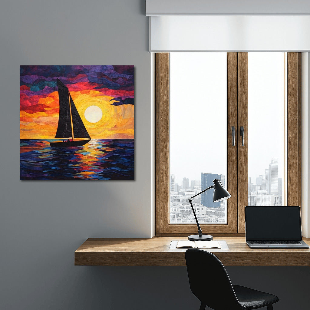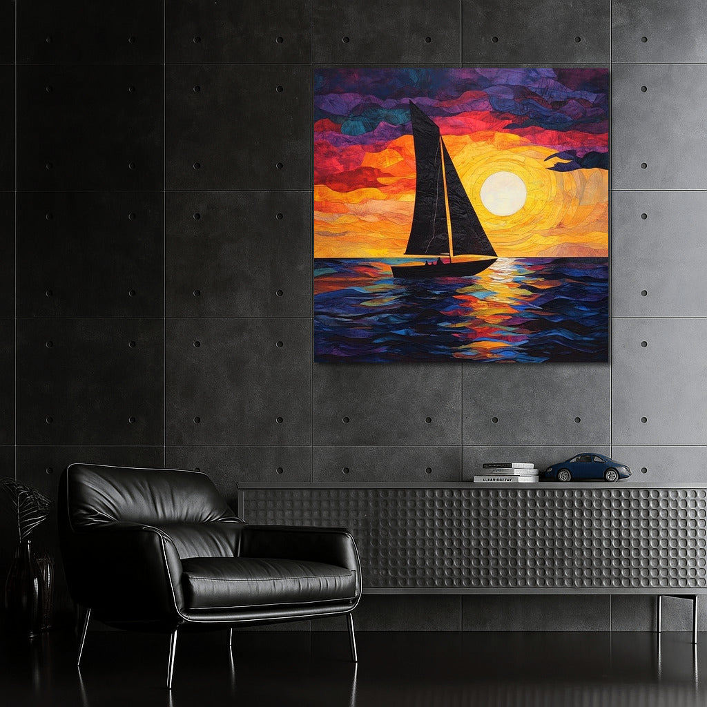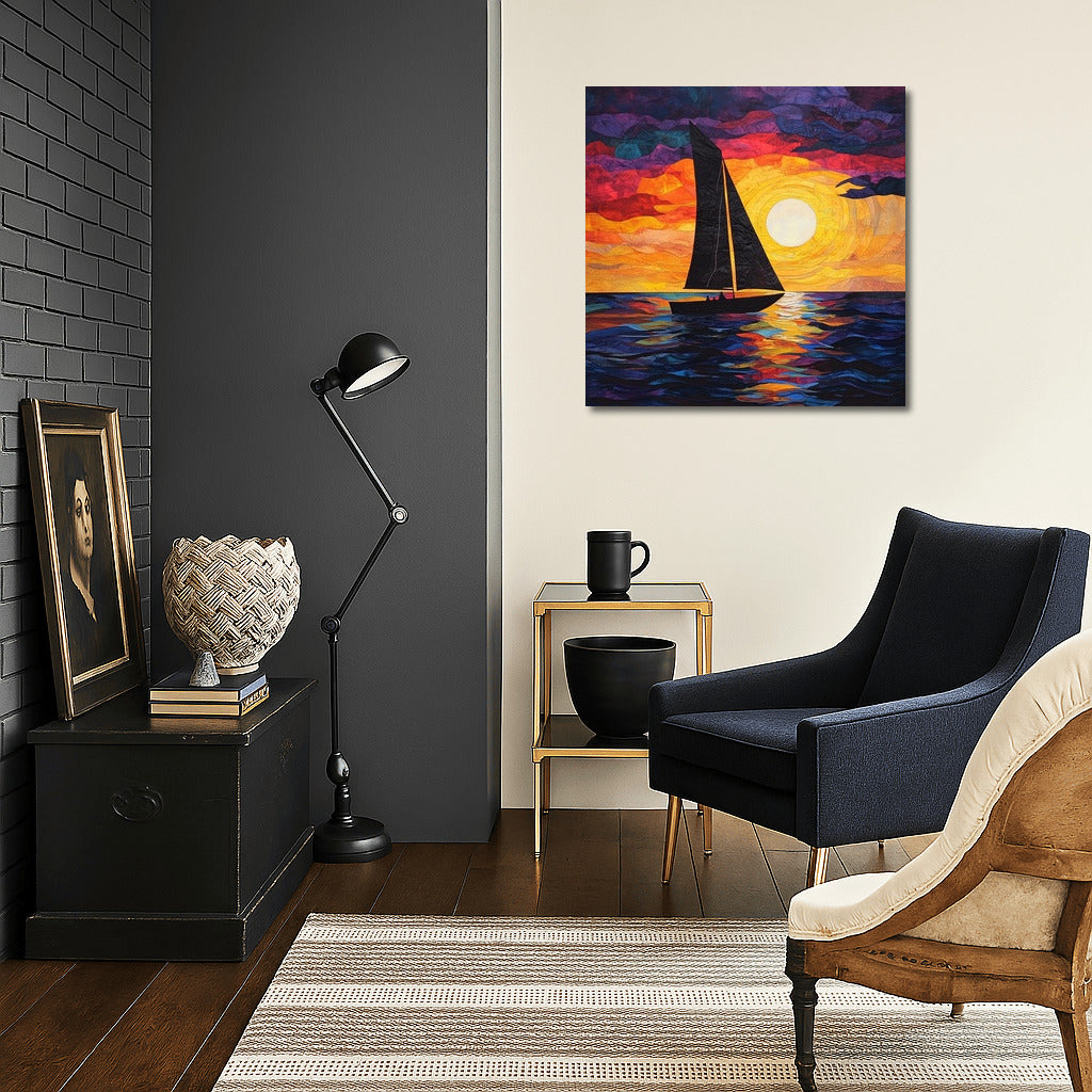 Dive into a dream with a poster of a sailboat gliding through the colorful waves of a sunset. The perfect wall art for your collection! See more from the collection: Mixed Wall Art