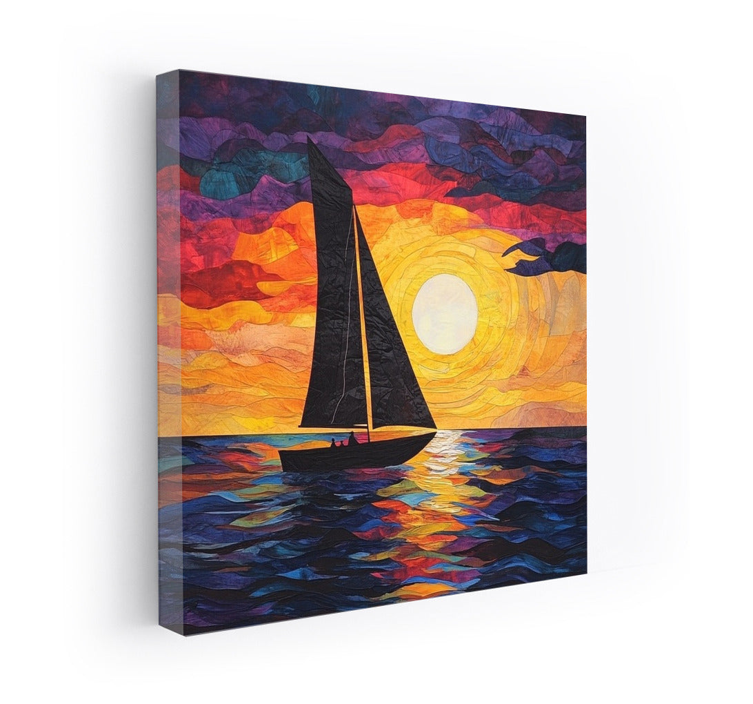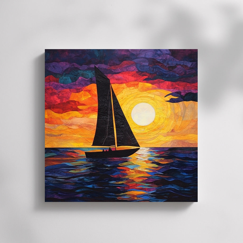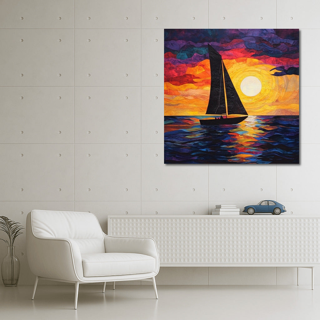 Dive into a dream with a poster of a sailboat gliding through the colorful waves of a sunset. The perfect wall art for your collection! See more from the collection: Mixed Wall Art