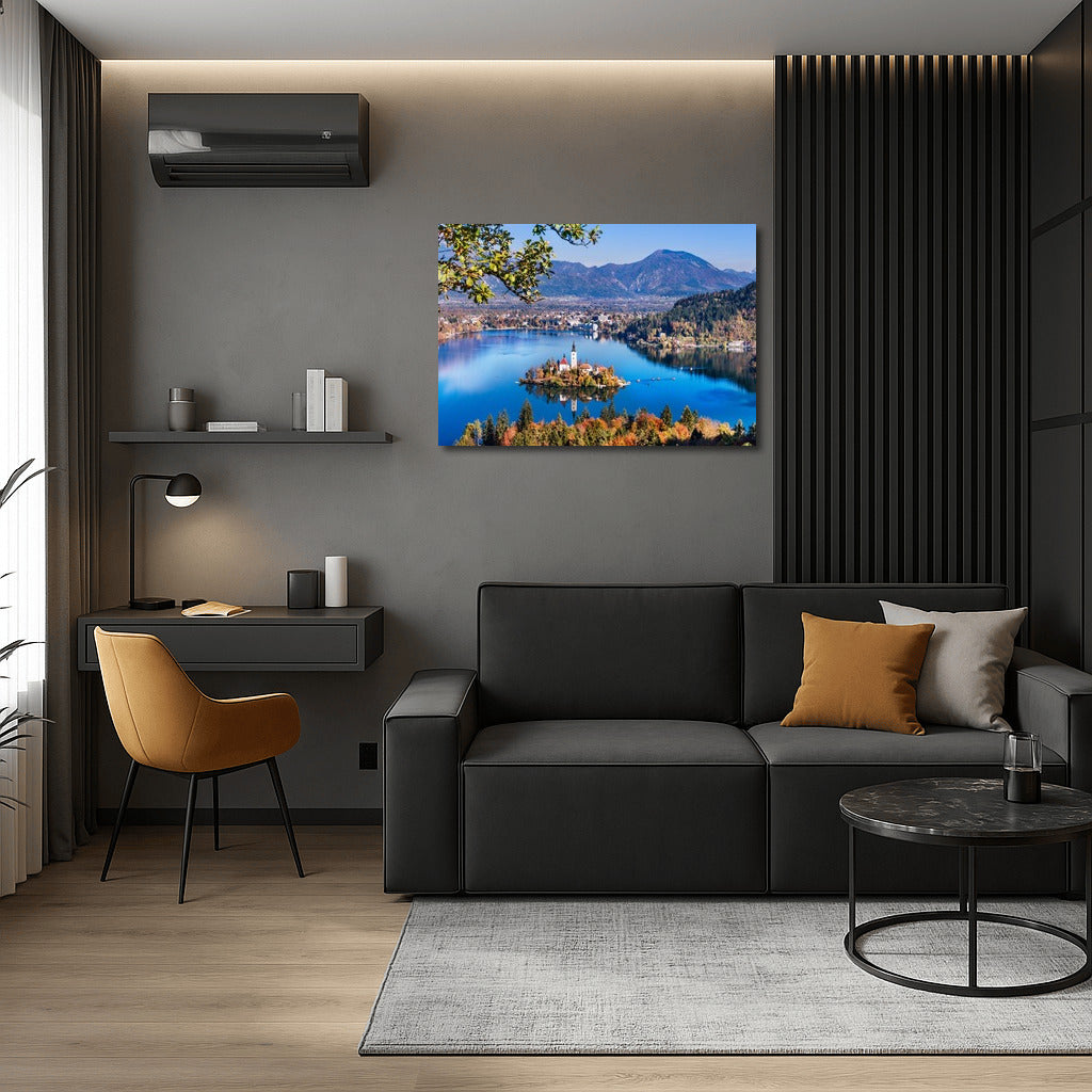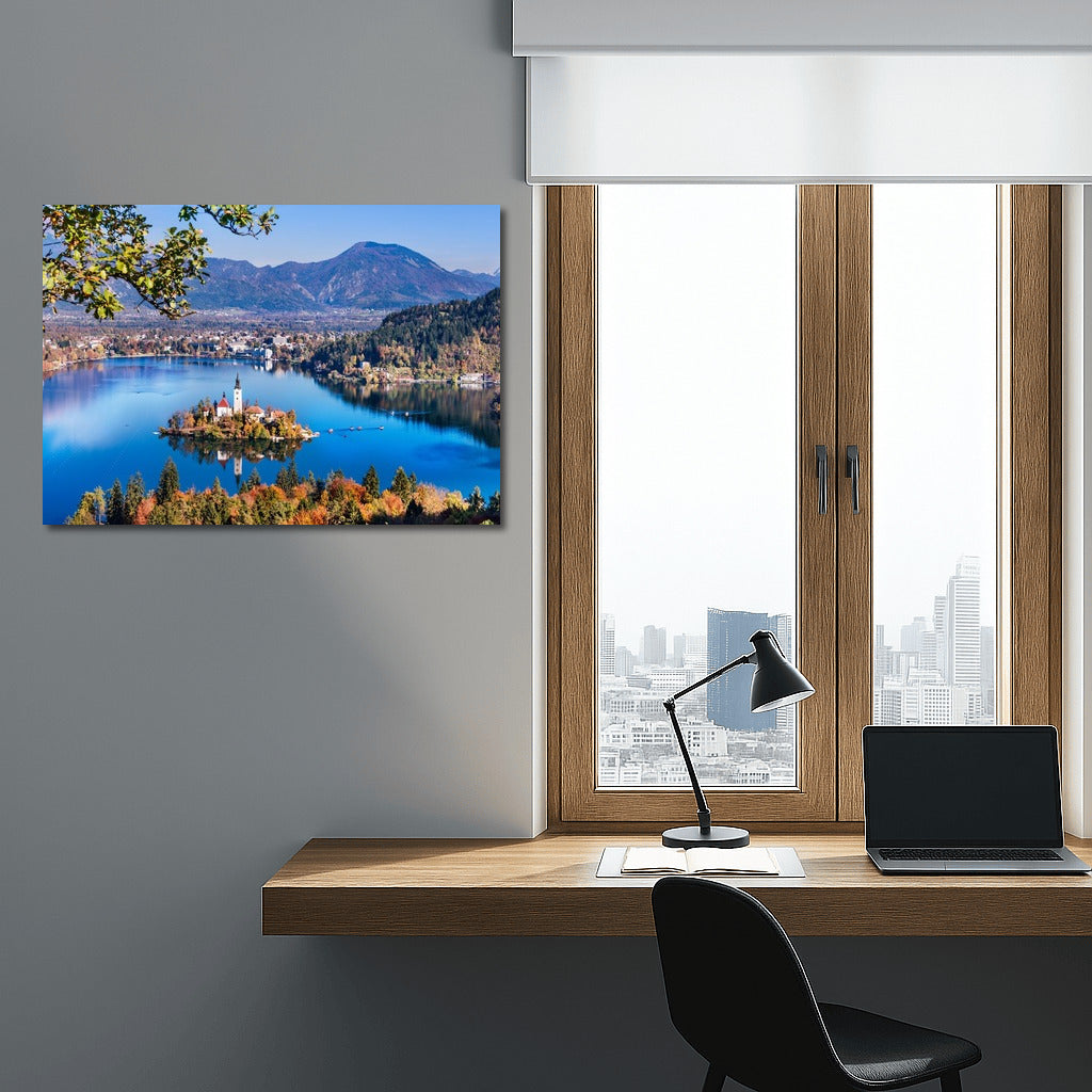Slovenia: Idyllic Island with Mountains as Backdrop Wall Art