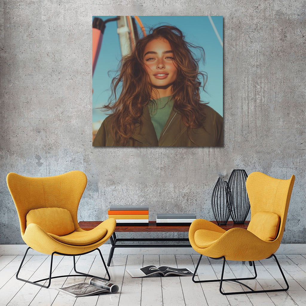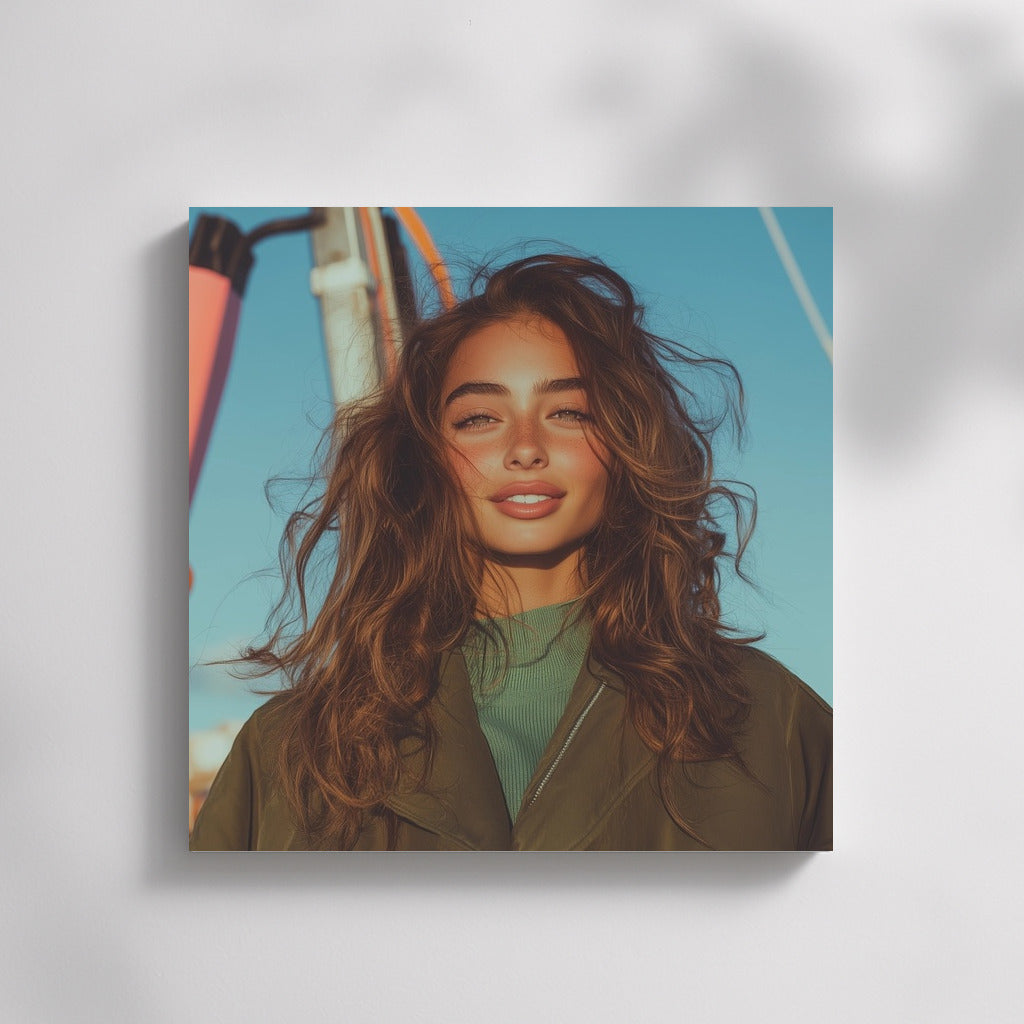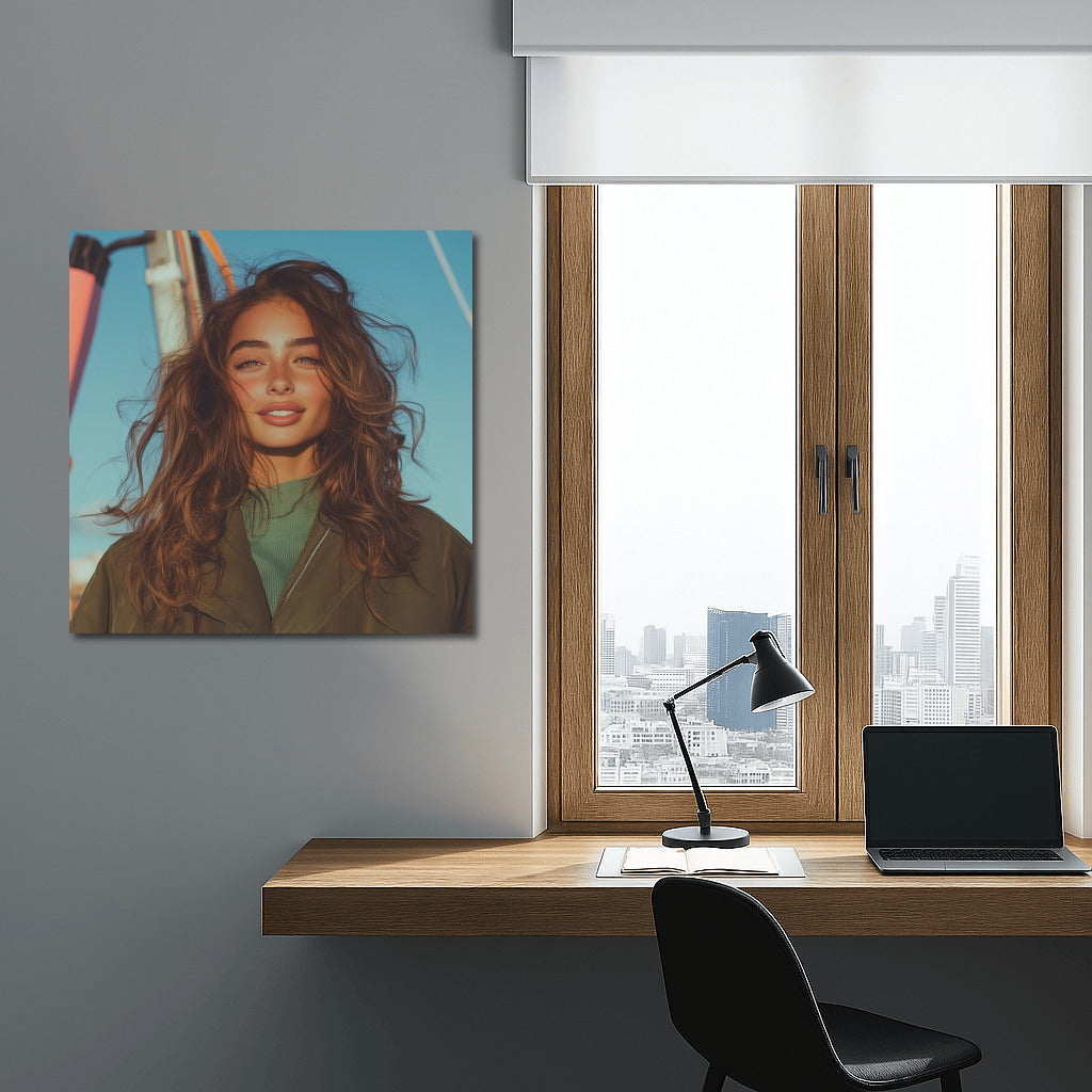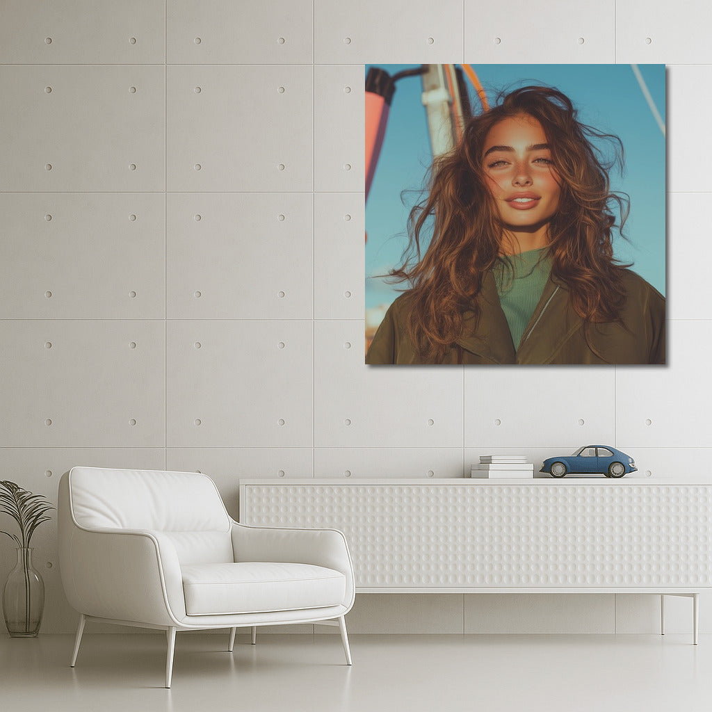 Sunny morning, light breeze and mysterious smile - this poster fills the space with warmth and dreamy atmosphere. See more from the collection: Wall Art with Women