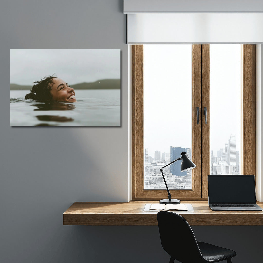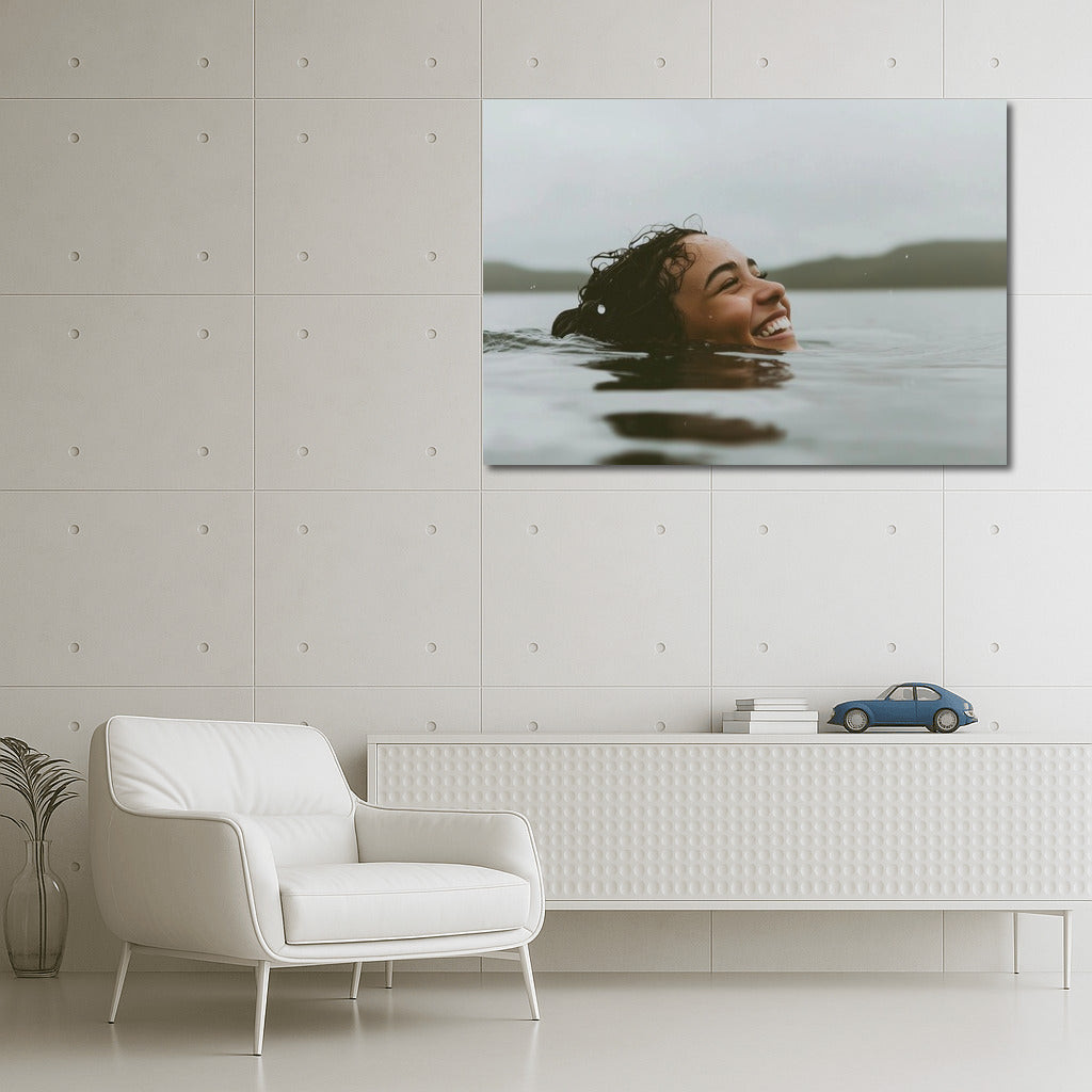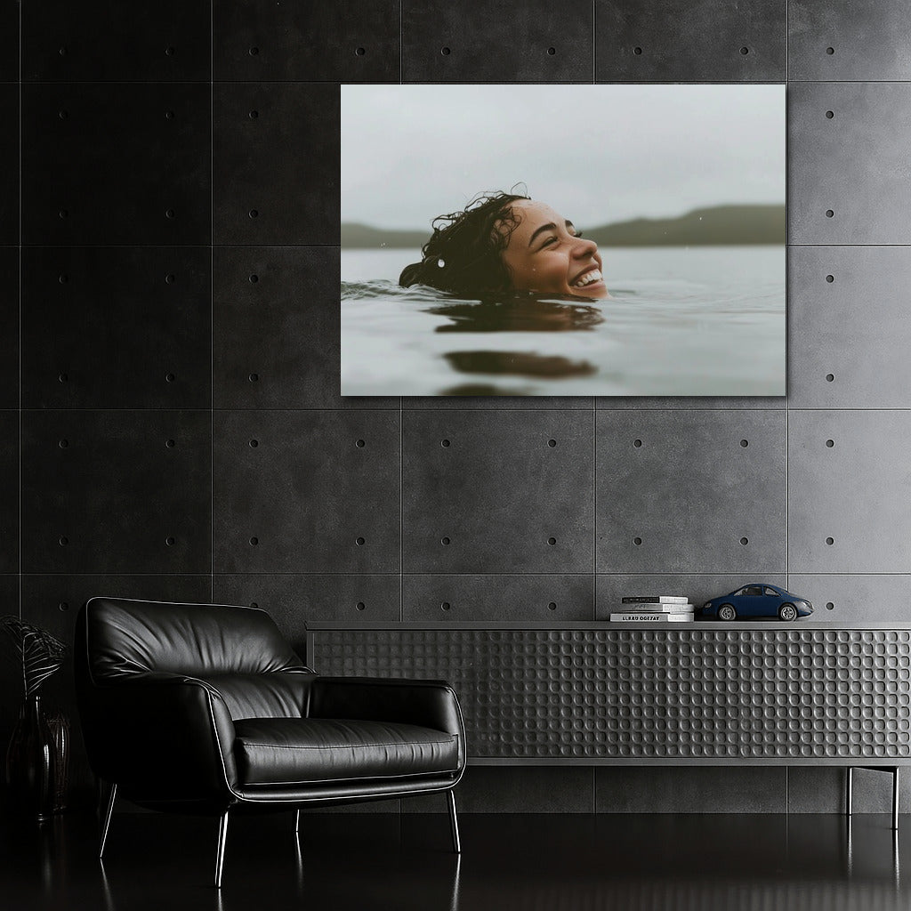 Water Freedom poster: Girl immersing herself in nature with a smile. Perfect wall art to create calm and joy. See more from the collection: Mixed Wall Art