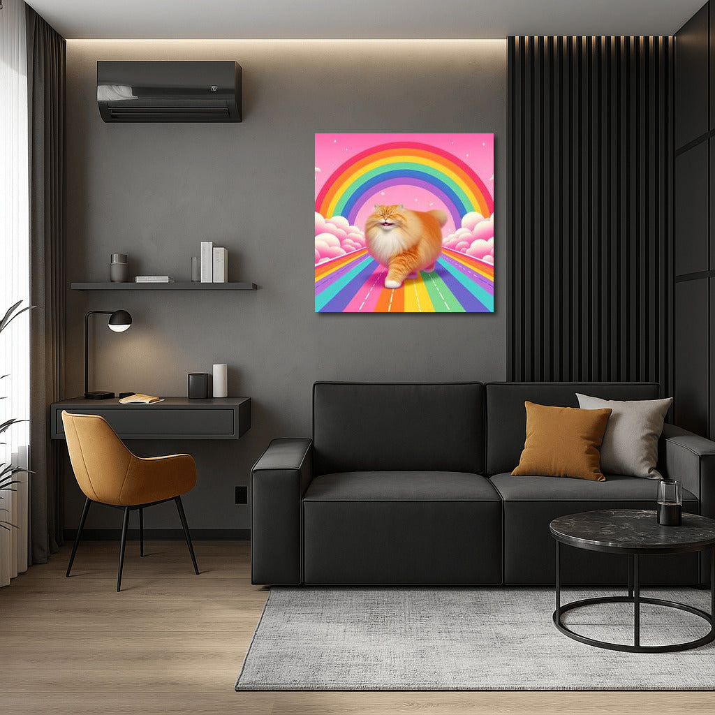 Smiling Cat on Rainbow Road: Bright Positive Wall Art