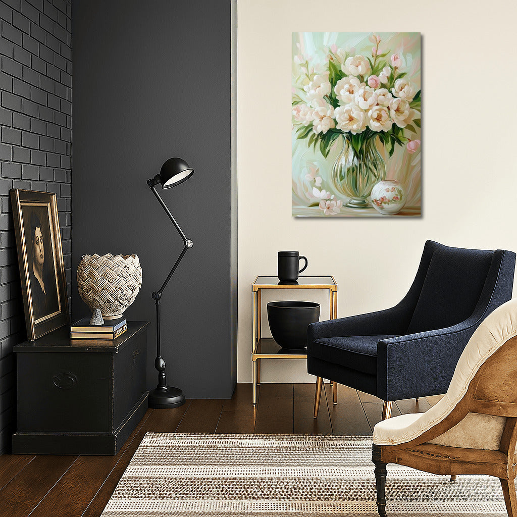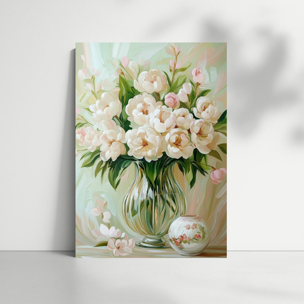 Immerse yourself in tenderness with a floral art poster: a bouquet of white peonies enlivens the space, bringing nature into every day. See more from the collection: Flowers Art