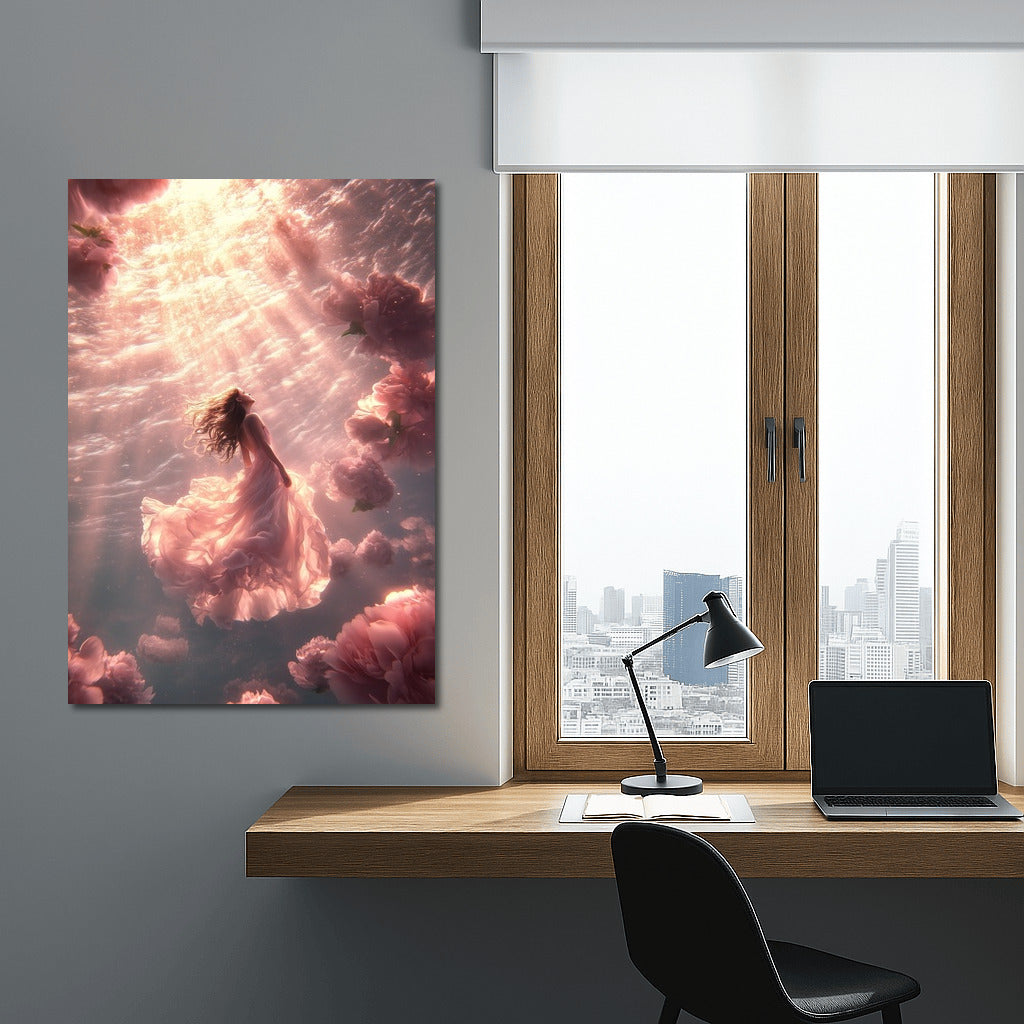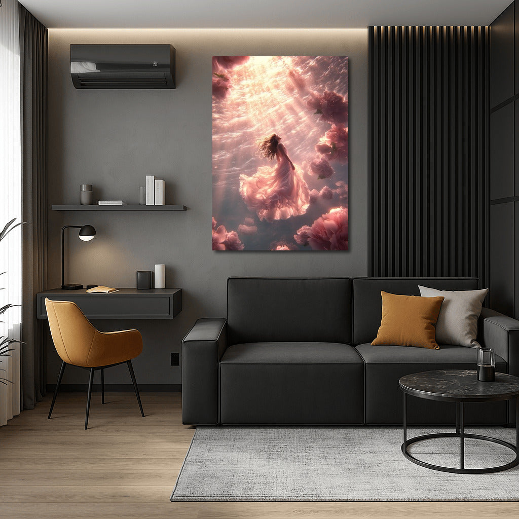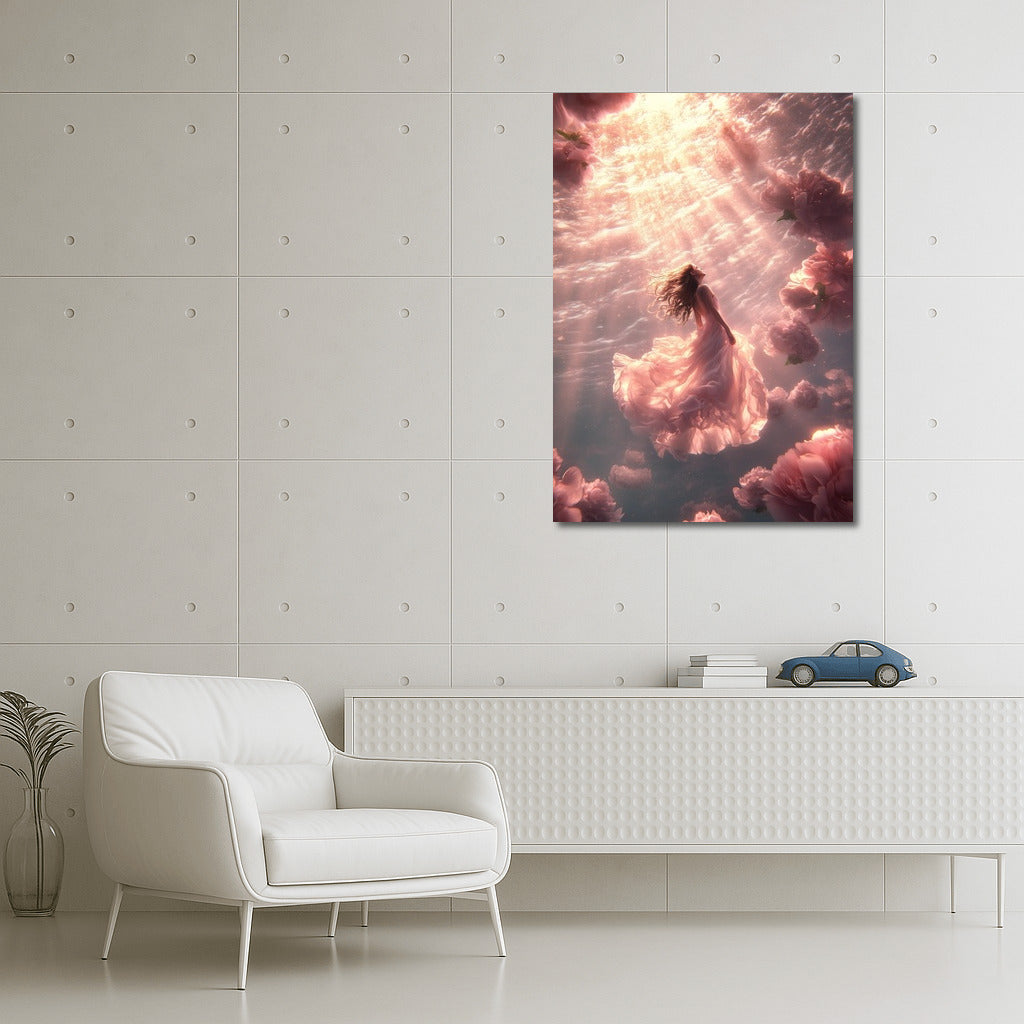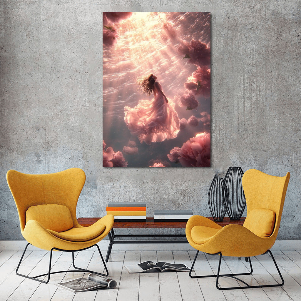 Ephemeral beauty: a poster with an ethereal figure floating among floral clouds. The magic of wall art in every petal. See more from the collection: Mixed Wall Art