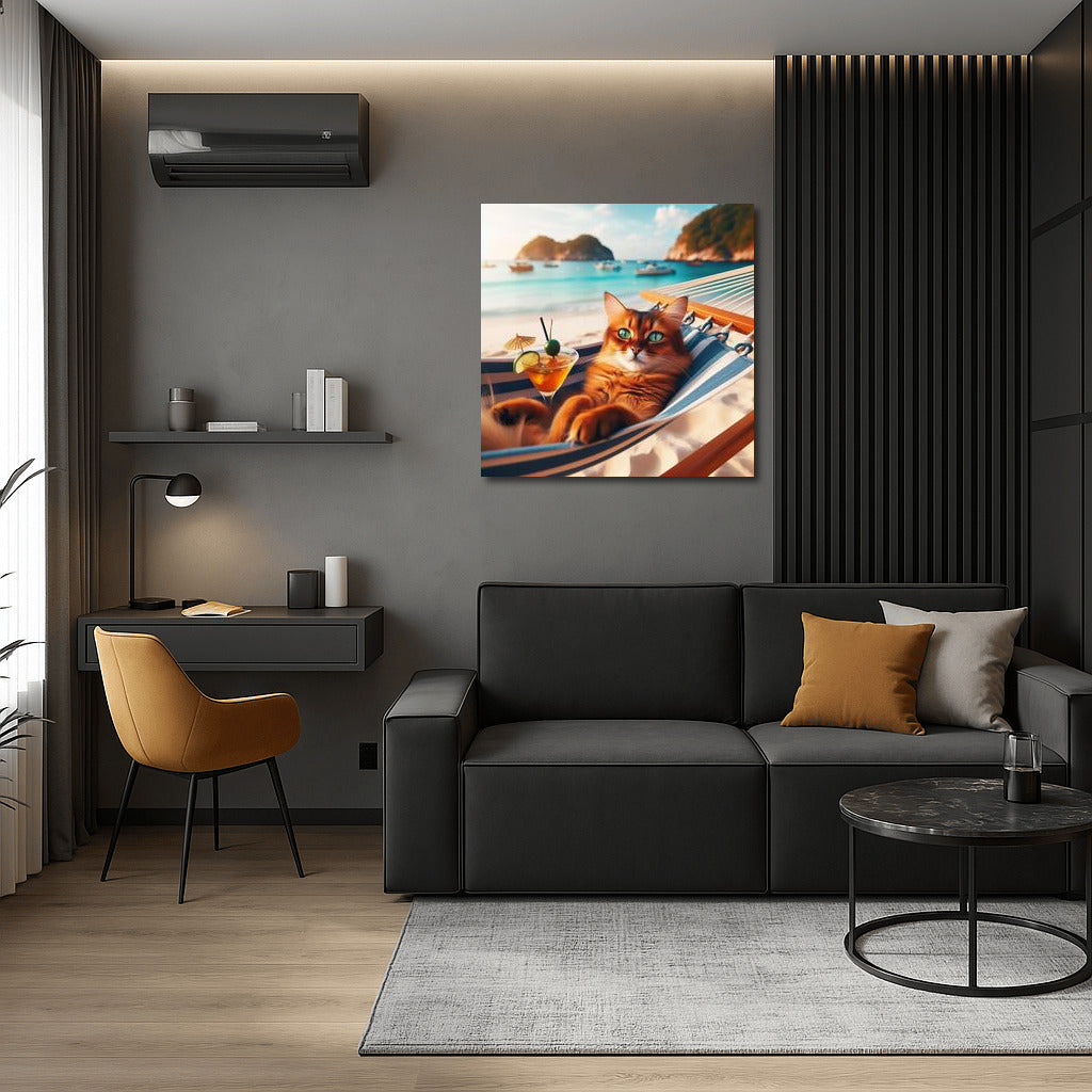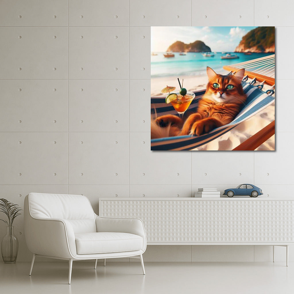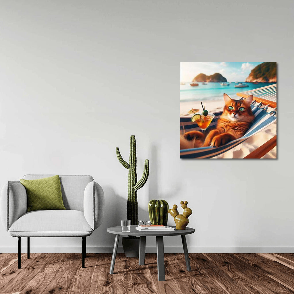 Somali Cat in a Hammock: Summer Beach Vacation with a Cocktail Wall Art