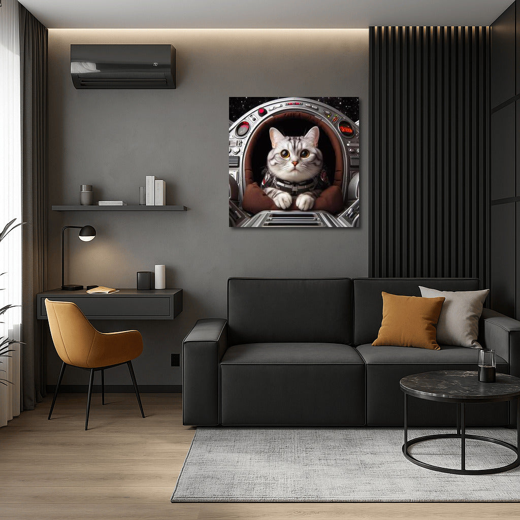 Space Cat Captain in Starship: Playful Journey Through the Galaxy Wall Art