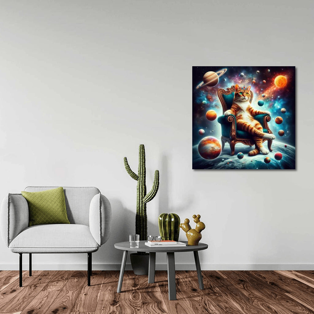 Space Cat Emperor: Master of the Galaxy Plays with the Planets Wall Art