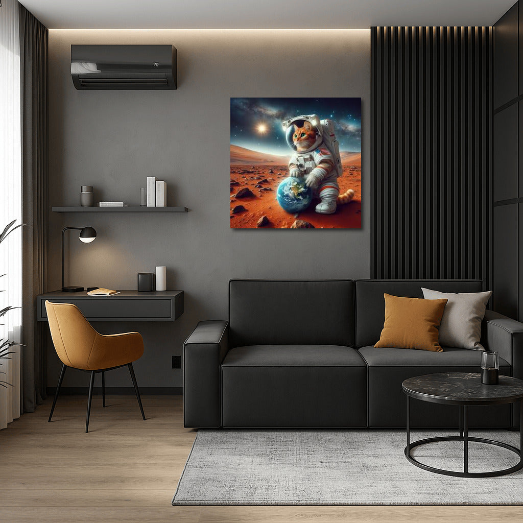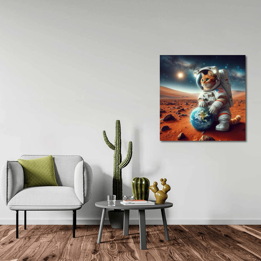 Space Cat in a Spacesuit on Mars: A Look at Earth Wall Art