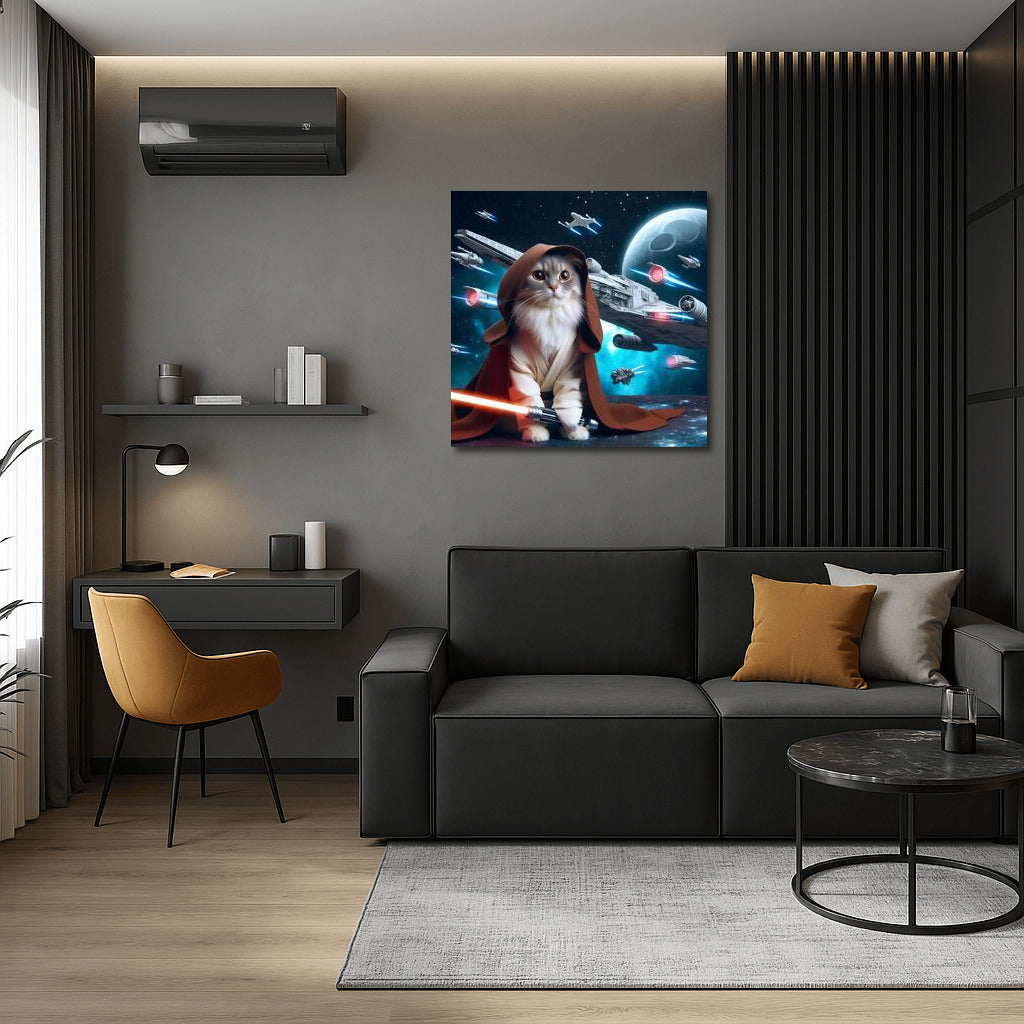 Space Cat Jedi With Laser Sword On Starship Background: Star Wars Style For Fans Wall Art