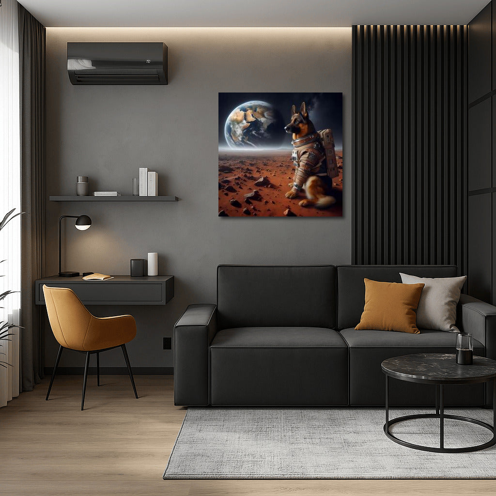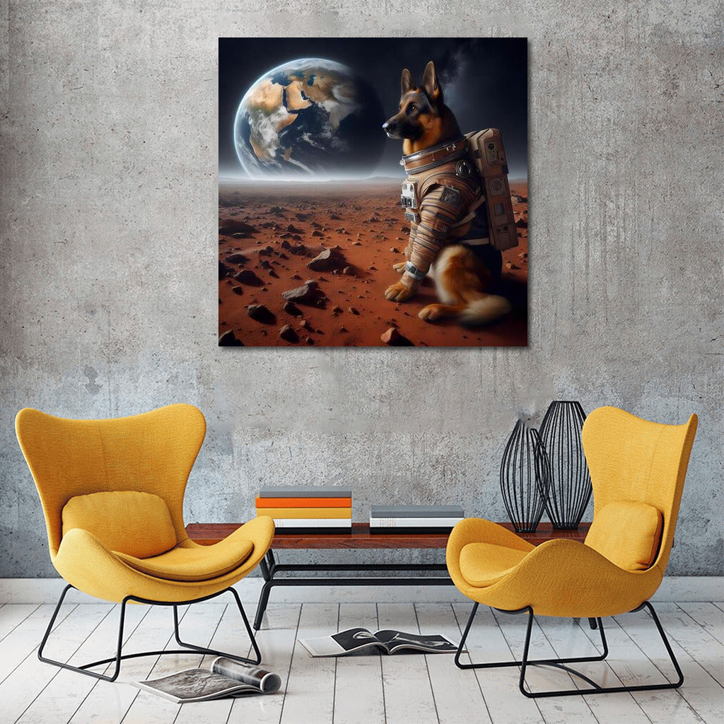 Space Dream: German Shepherd in Spacesuit on Mars Looking at Earth Wall Art