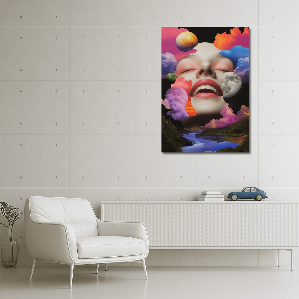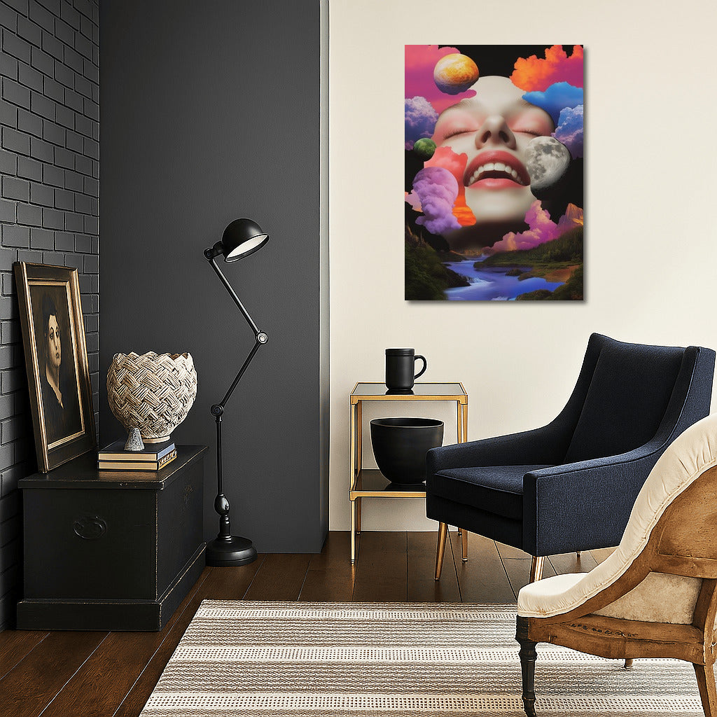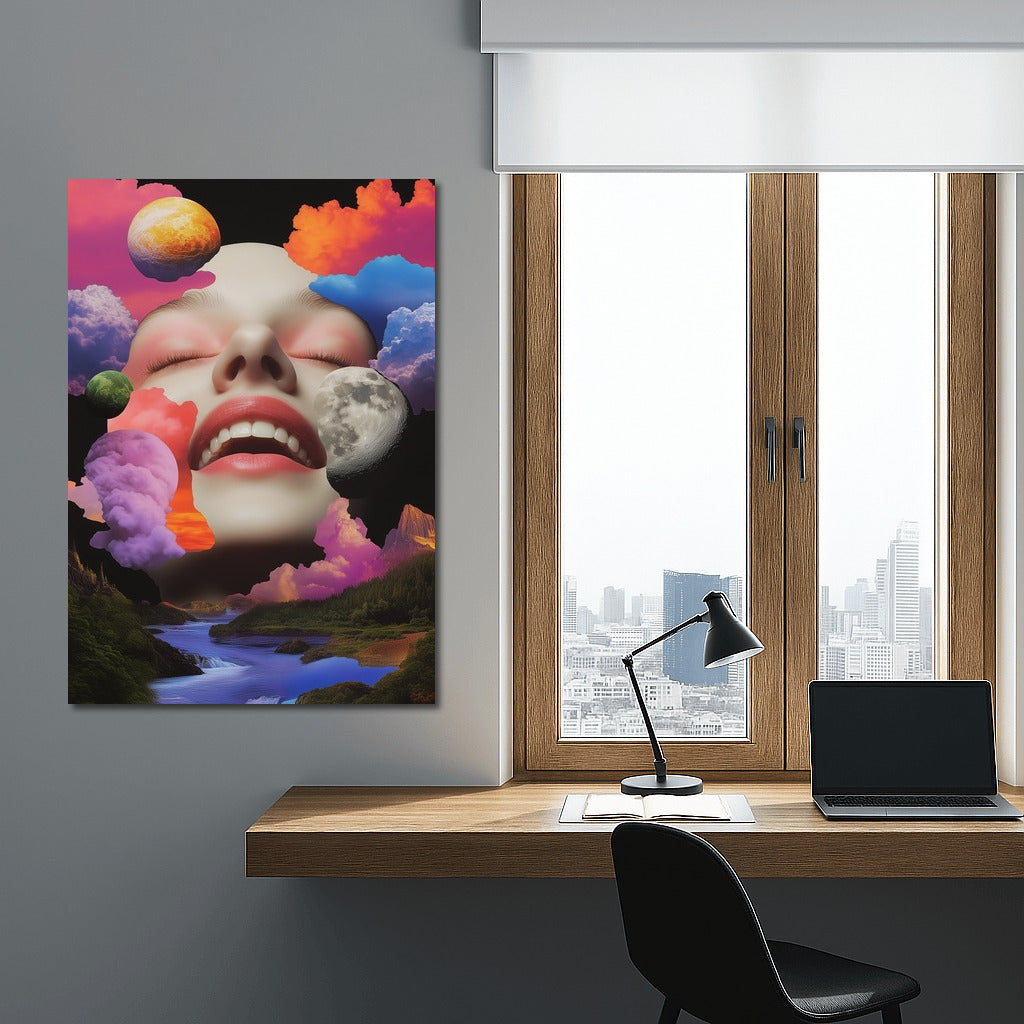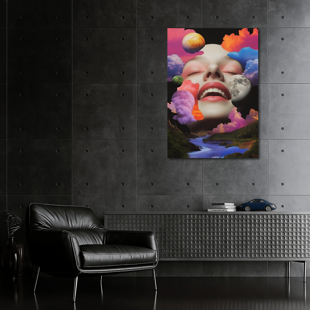 Dive into a dream: a fantastic painting with colorful clouds and planets that bring your wall art to life! See more from the collection: Surreal Art