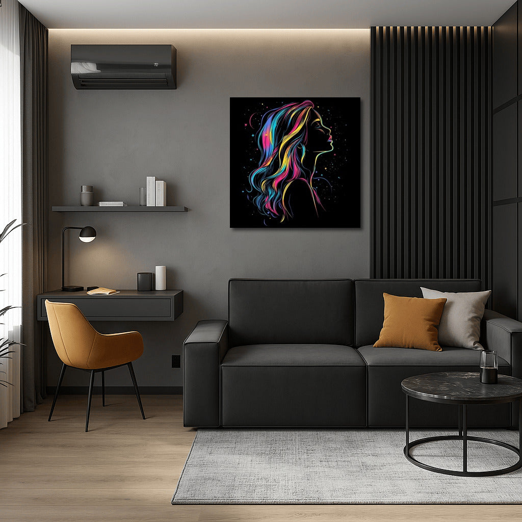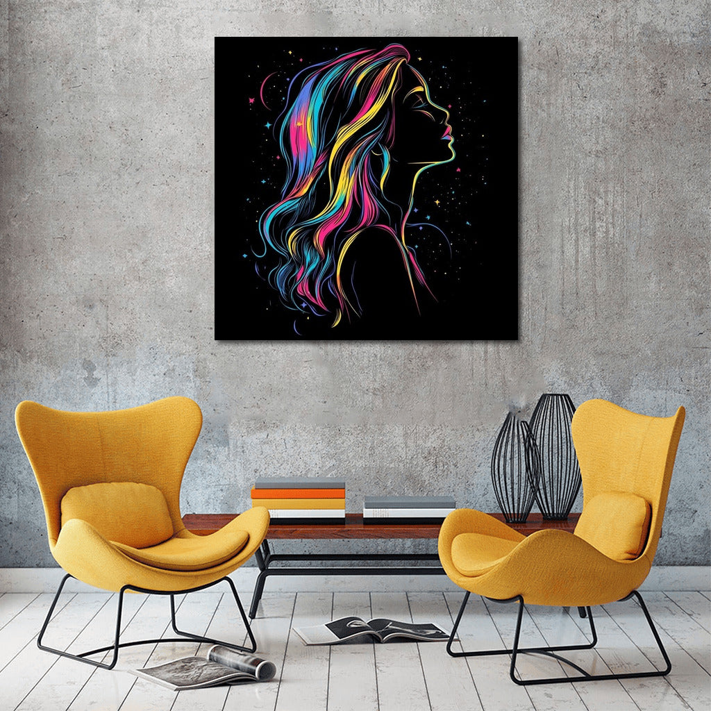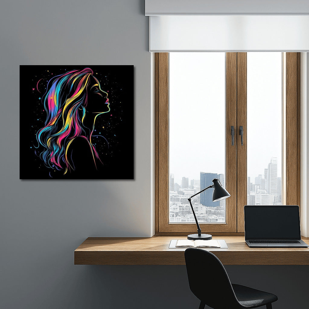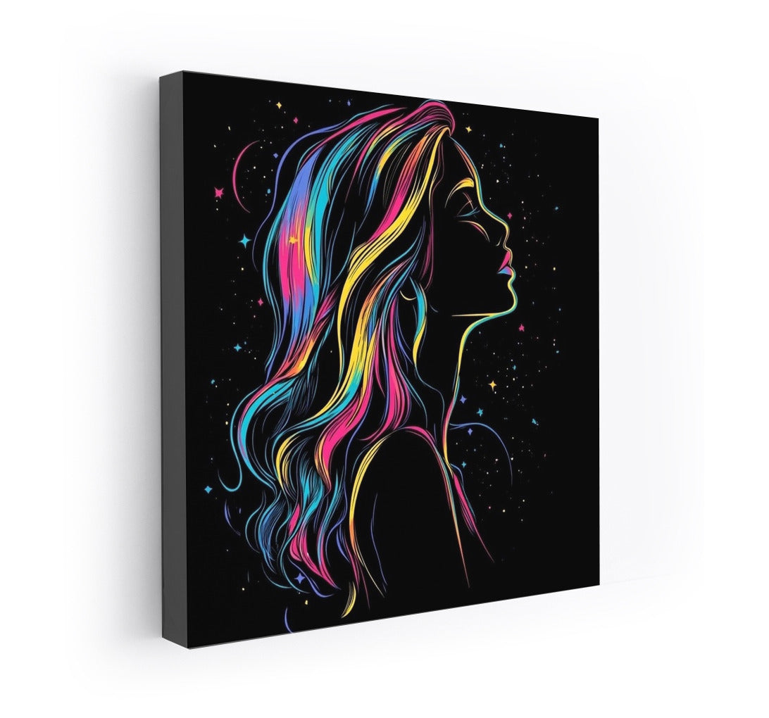 Mysterious painting: silhouette of a dream in cosmic colors. Immerse yourself in the magic of wall art with this vibrant poster. See more from the collection: Mixed Wall Art
