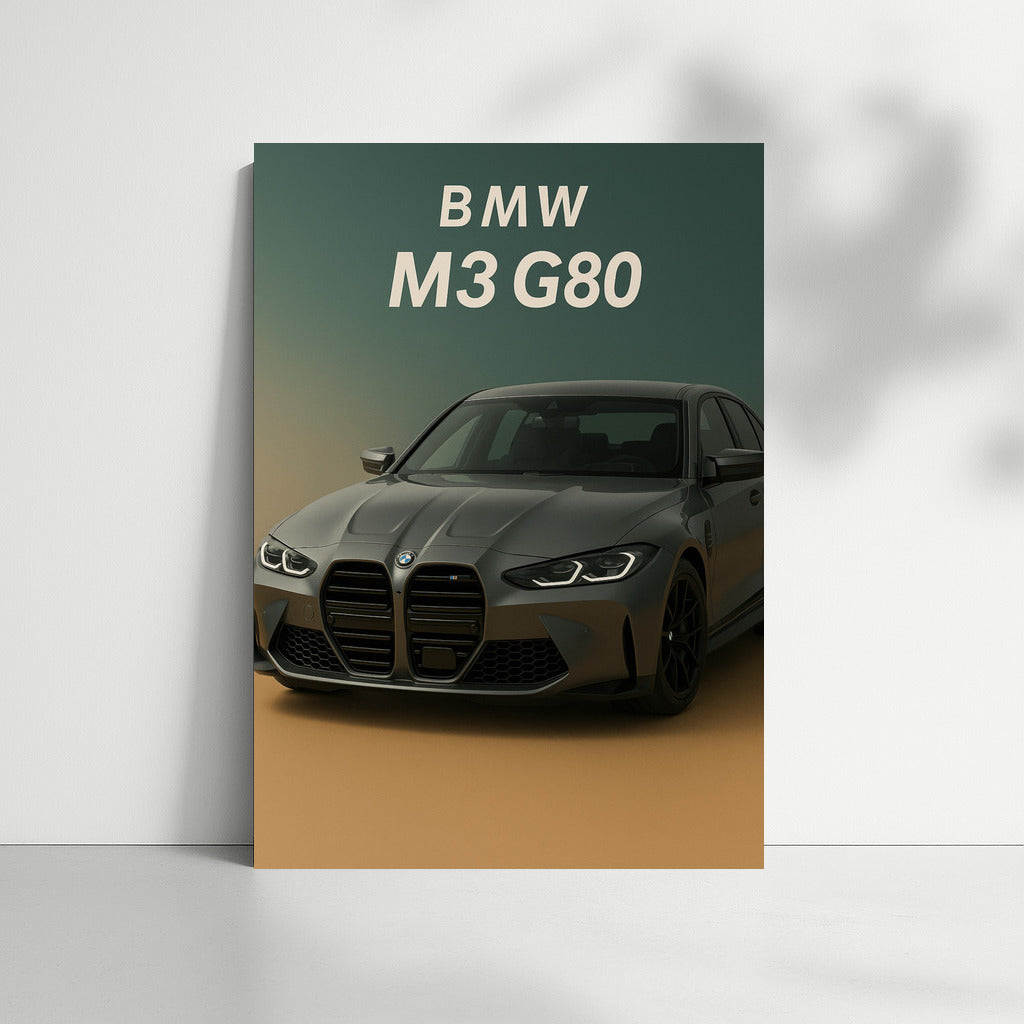 Dynamic BMW M3 G80 in stylish grey. A poster that will add speed to your wall art! See more from the collection: BMW Art