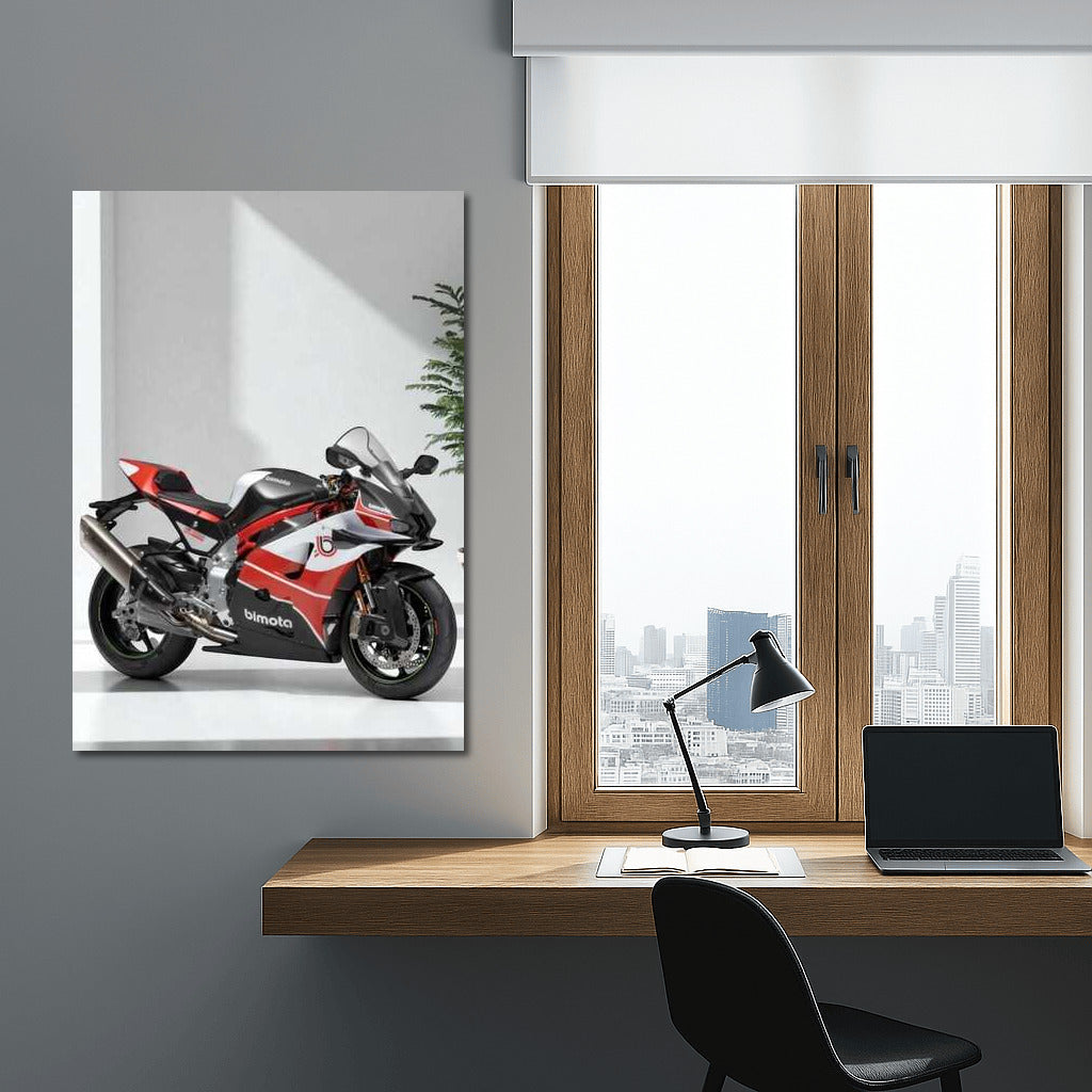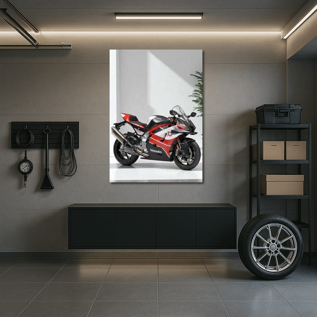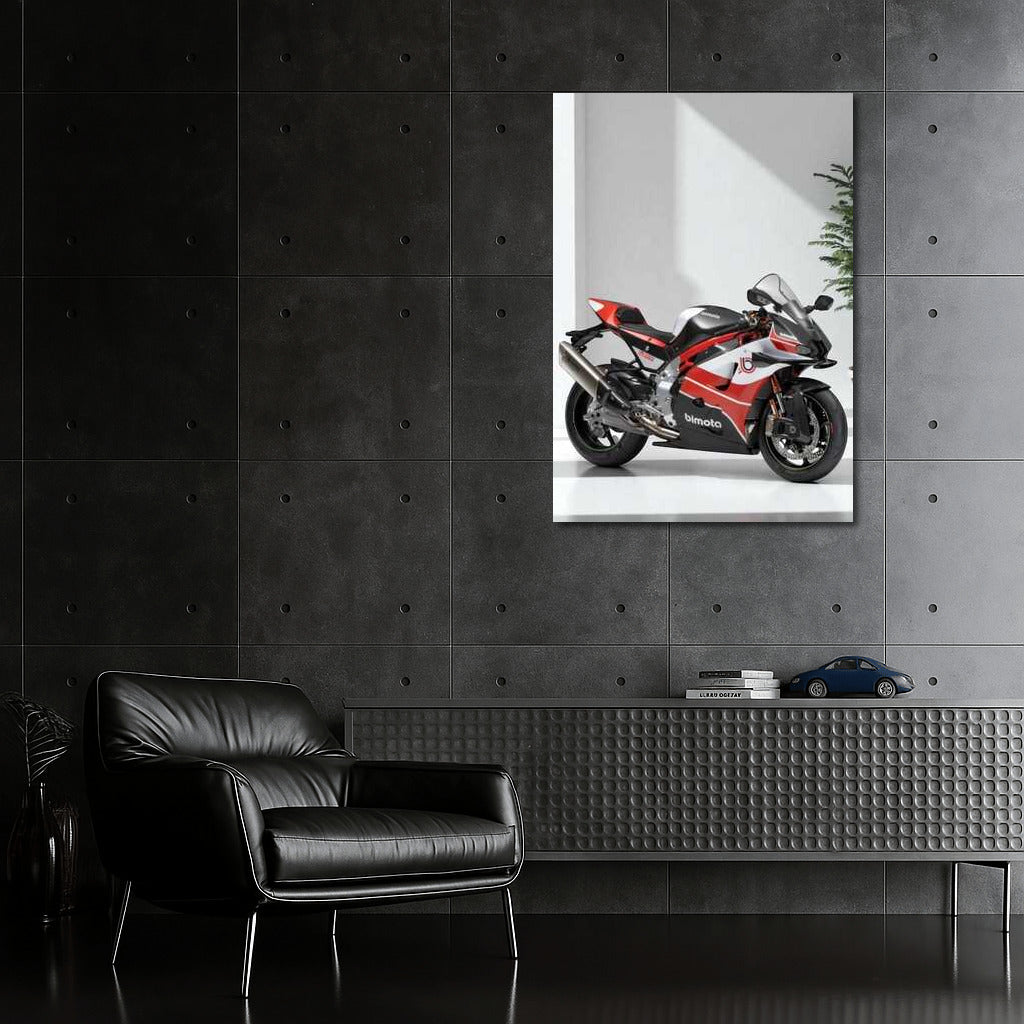Immerse yourself in the world of speed with this stunning Bimota KB998 Parking Lot Wall Art. The perfect wall art for motor lovers! See more from the collection: Bimota Motorcycle Art