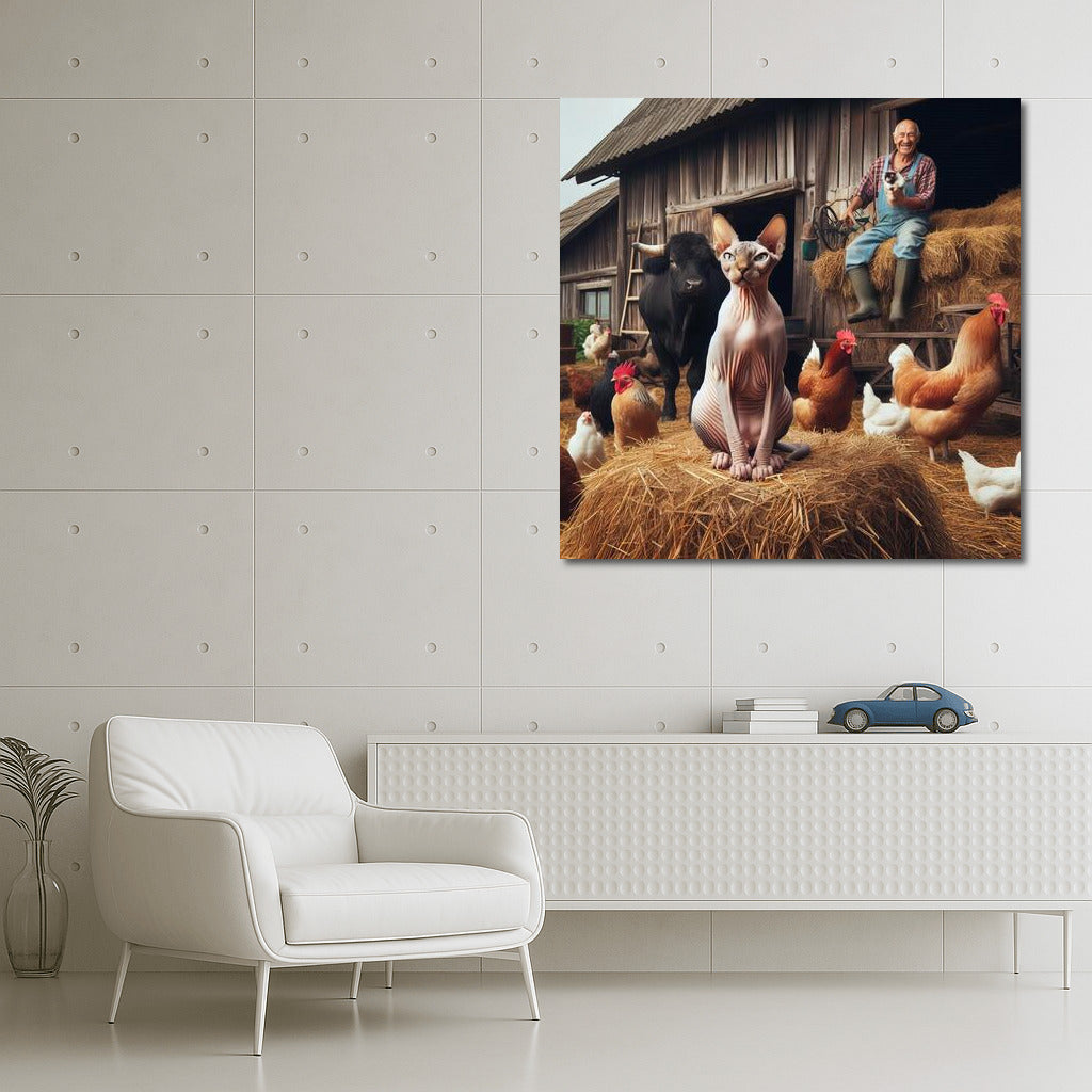 Sphynx On a Rural Farm 4 Poster: An amazing sphynx in the middle of a busy farmyard - art that comes to life on the walls! See more from the collection: Animals Art