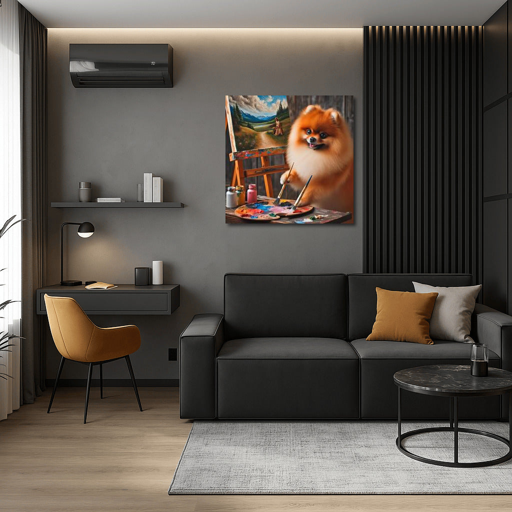 A charming Spitz artist creates art on canvas! This poster will become a bright accent in your interior. See more from the collection: Animals Art