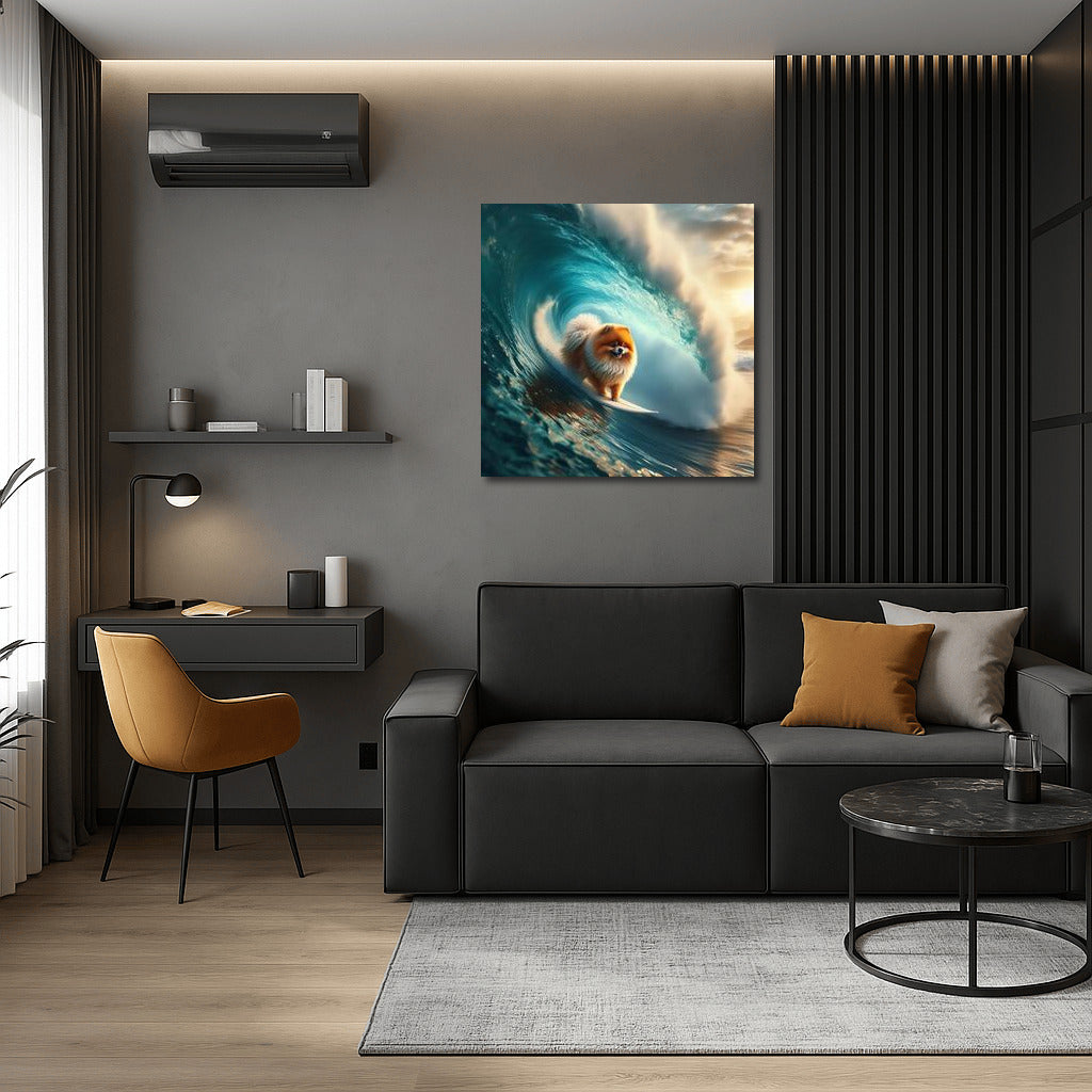 Poster: Spitz on the crest of a wave. Wall art for lovers of adventure and furry charm. ?? See more from the collection: Animals Art