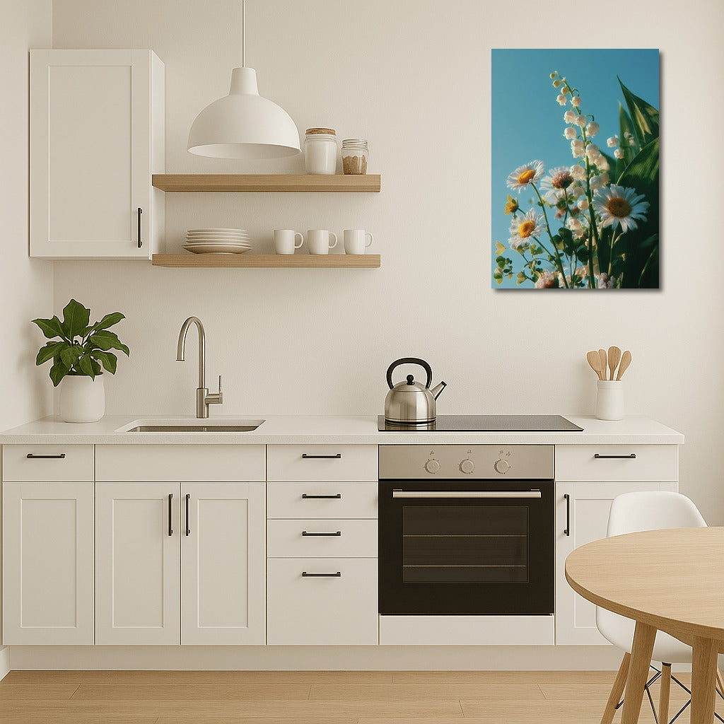 Immerse yourself in the freshness of spring with this poster. Delicate daisies and lilies of the valley create charm in every detail of the wall art. See more from the collection: Daisies Art