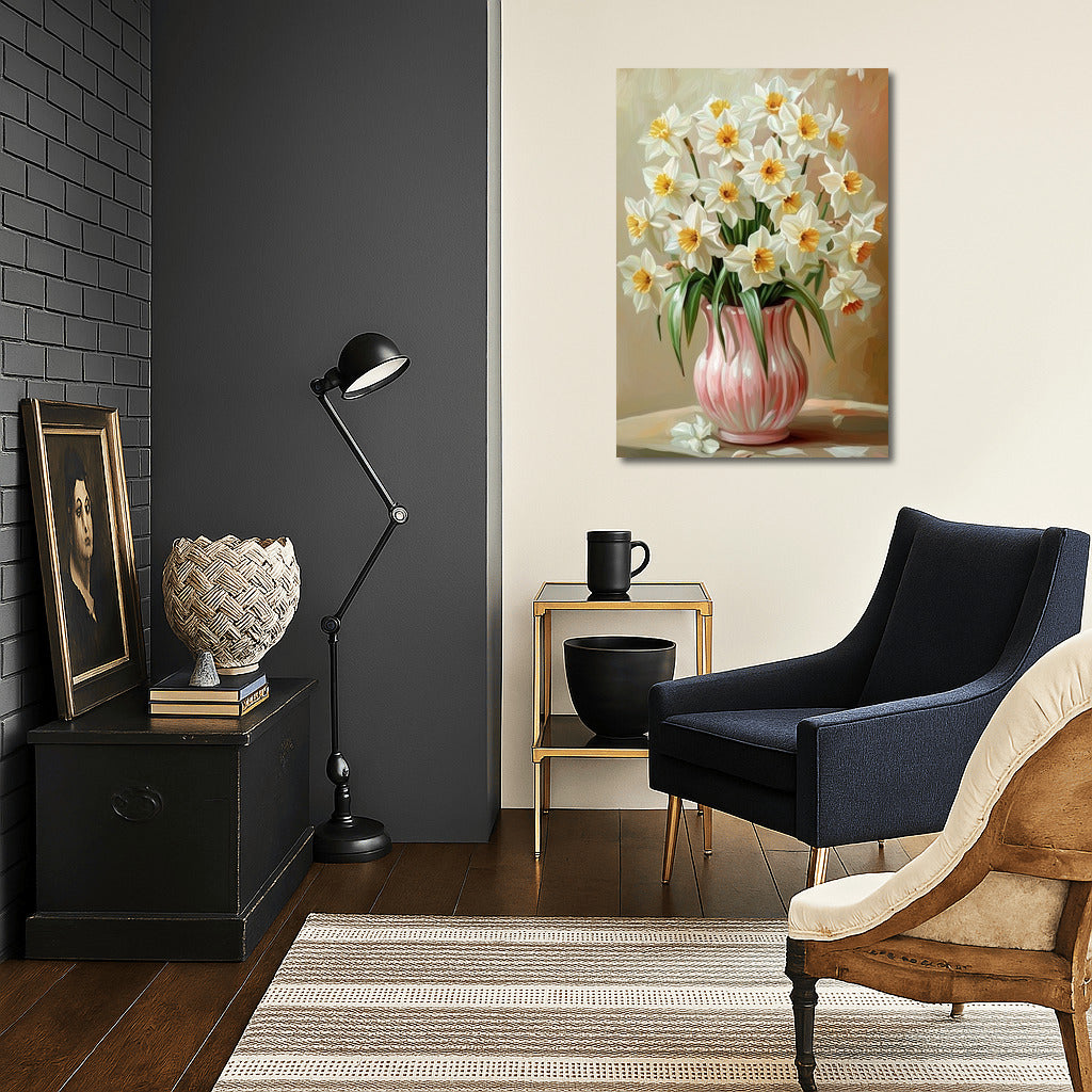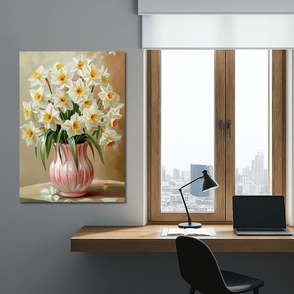A poster with delicate daffodils in a pink vase will add a spring mood to your interior. The perfect wall art for your home! See more from the collection: Daffodils Art