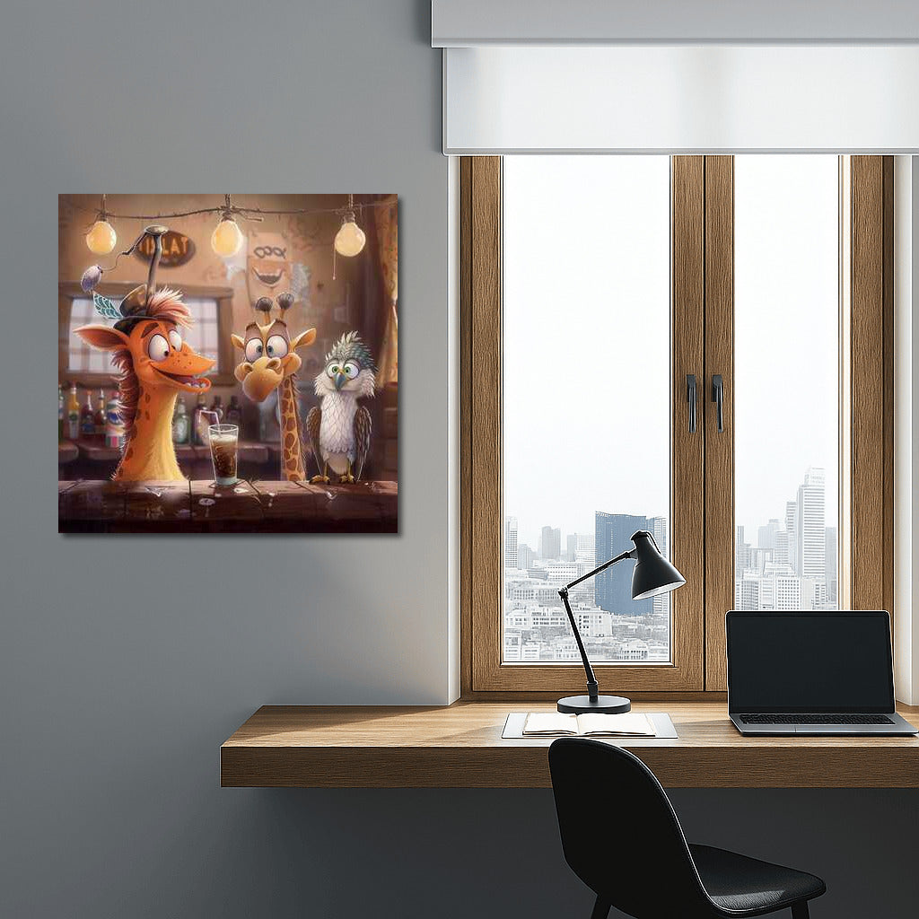 Furry stand-up: funny animals in a bar turn wall art into a source of fun and smiles! See more from the collection: Humor Art