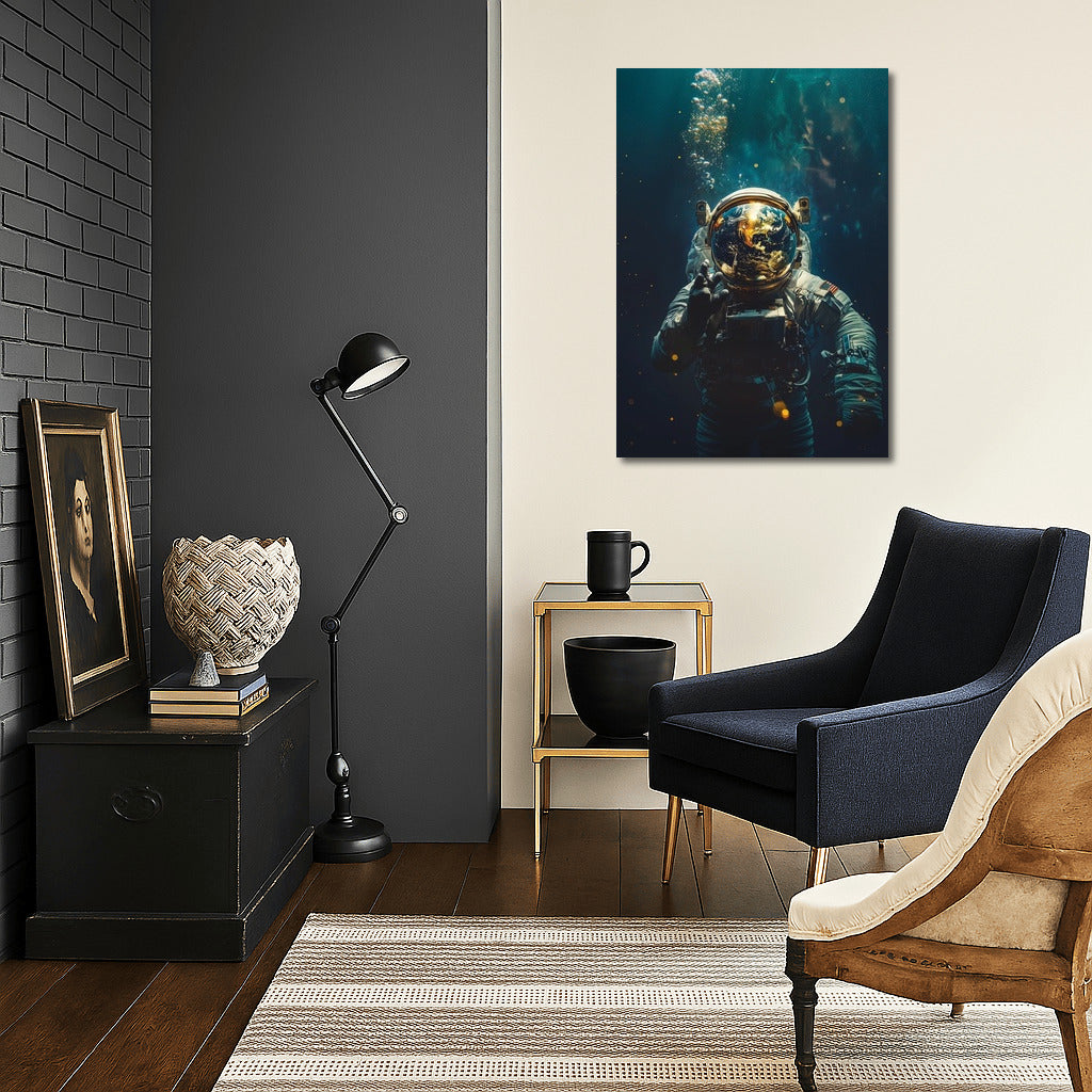 Space inspiration: a poster with an astronaut in mysterious waters that will bring the atmosphere of fantastic depths to your interior. See more from the collection: Mixed Wall Art