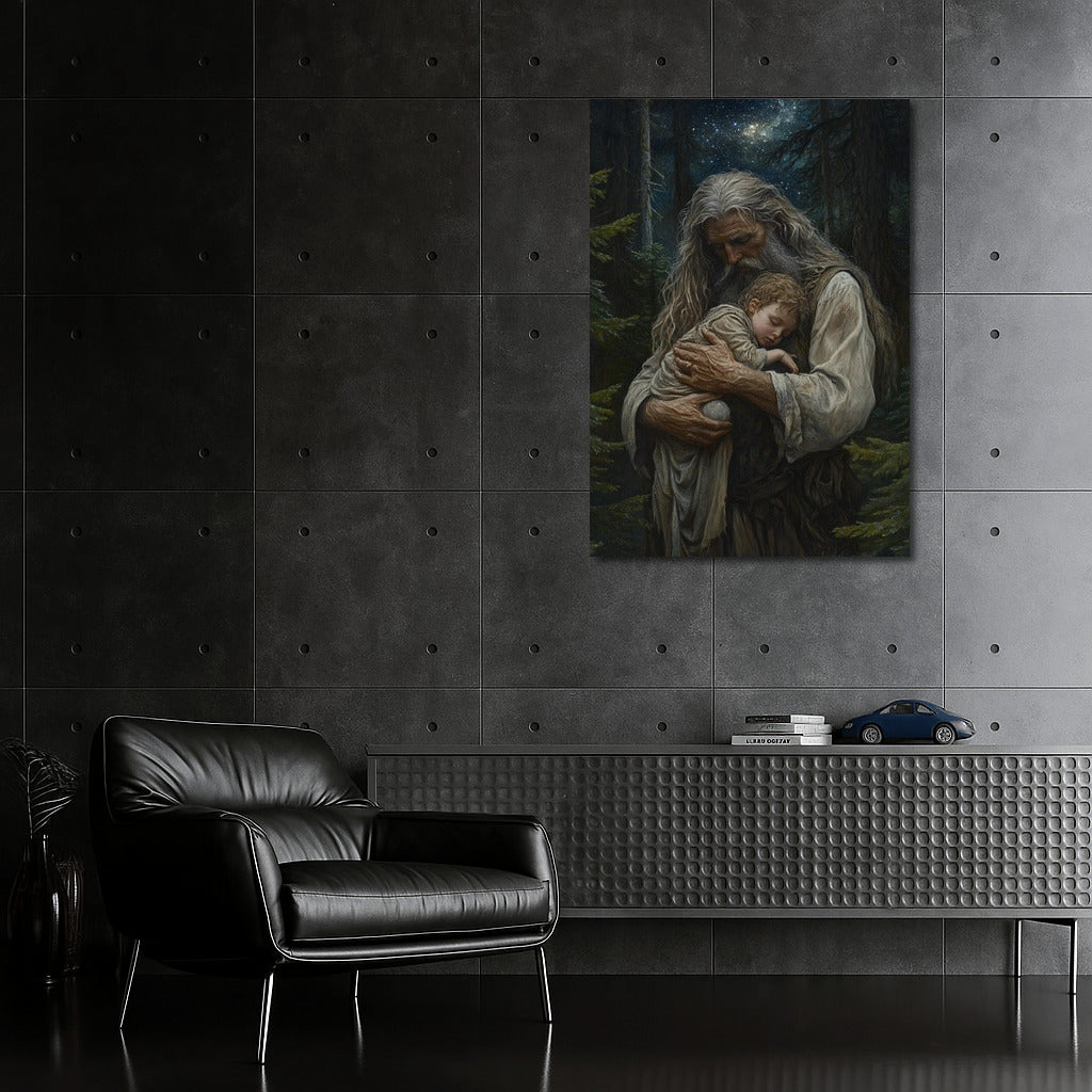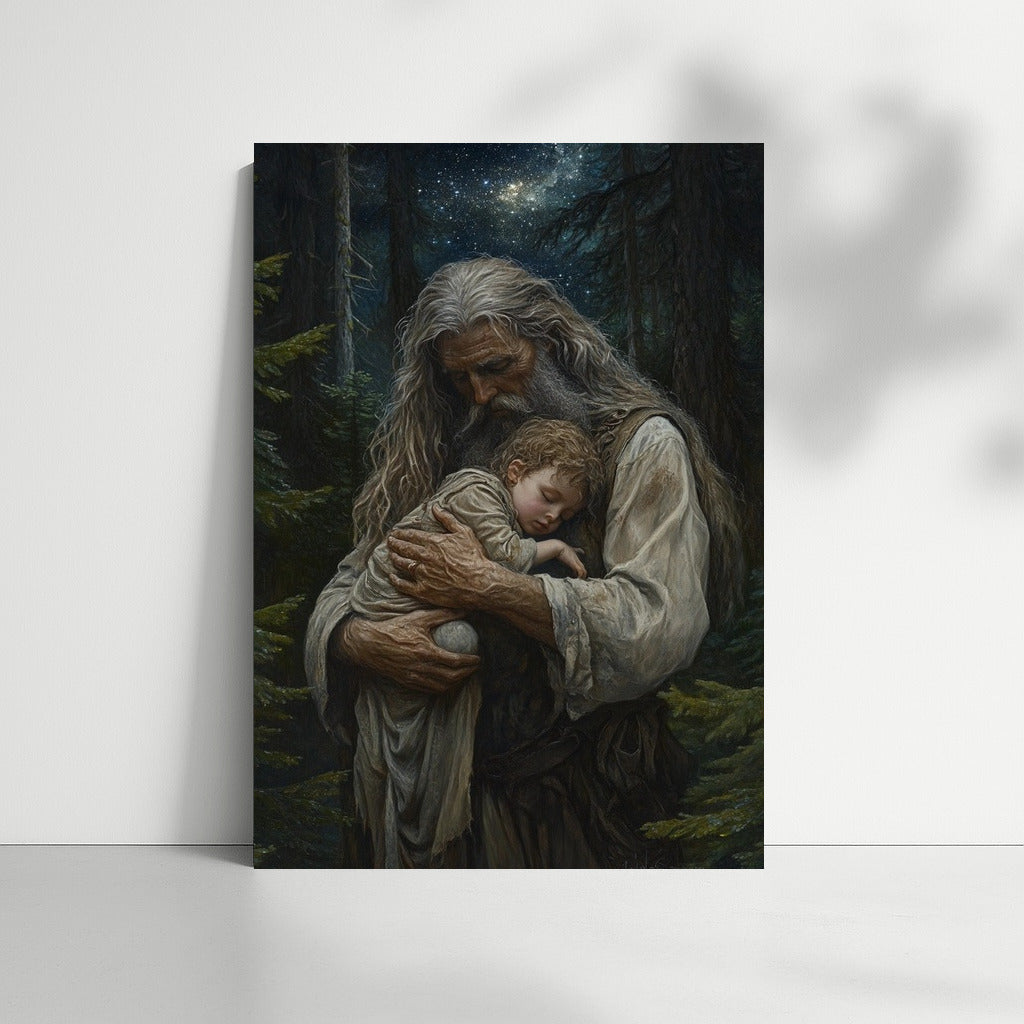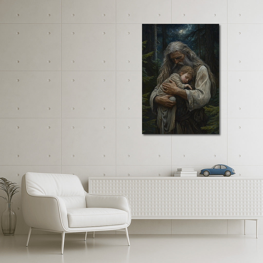 The magic of care and peace comes alive in this poster. Wall art that embodies a warm connection under the stars. See more from the collection: Fantasy Art