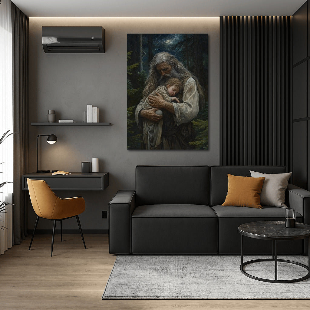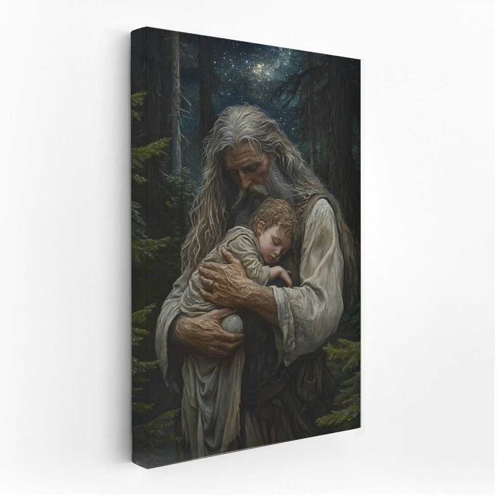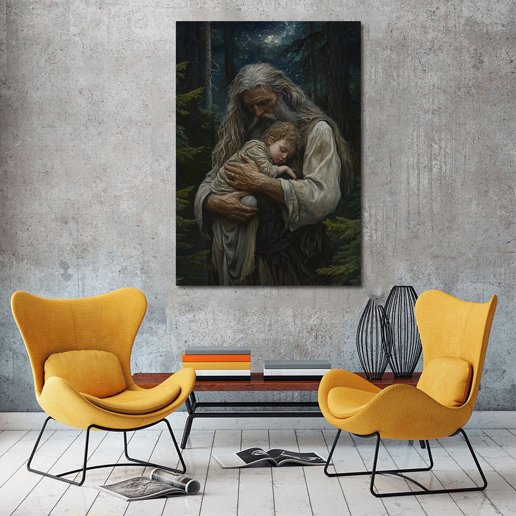 The magic of care and peace comes alive in this poster. Wall art that embodies a warm connection under the stars. See more from the collection: Fantasy Art