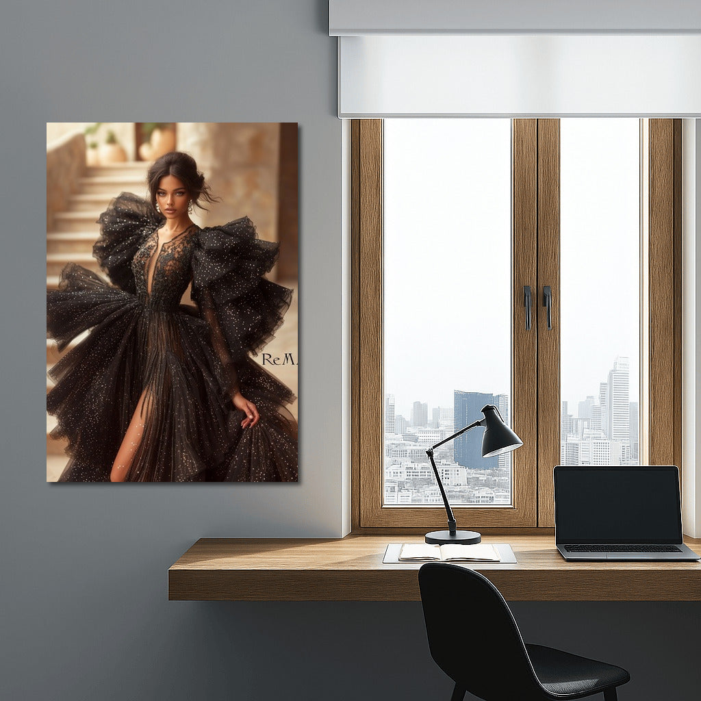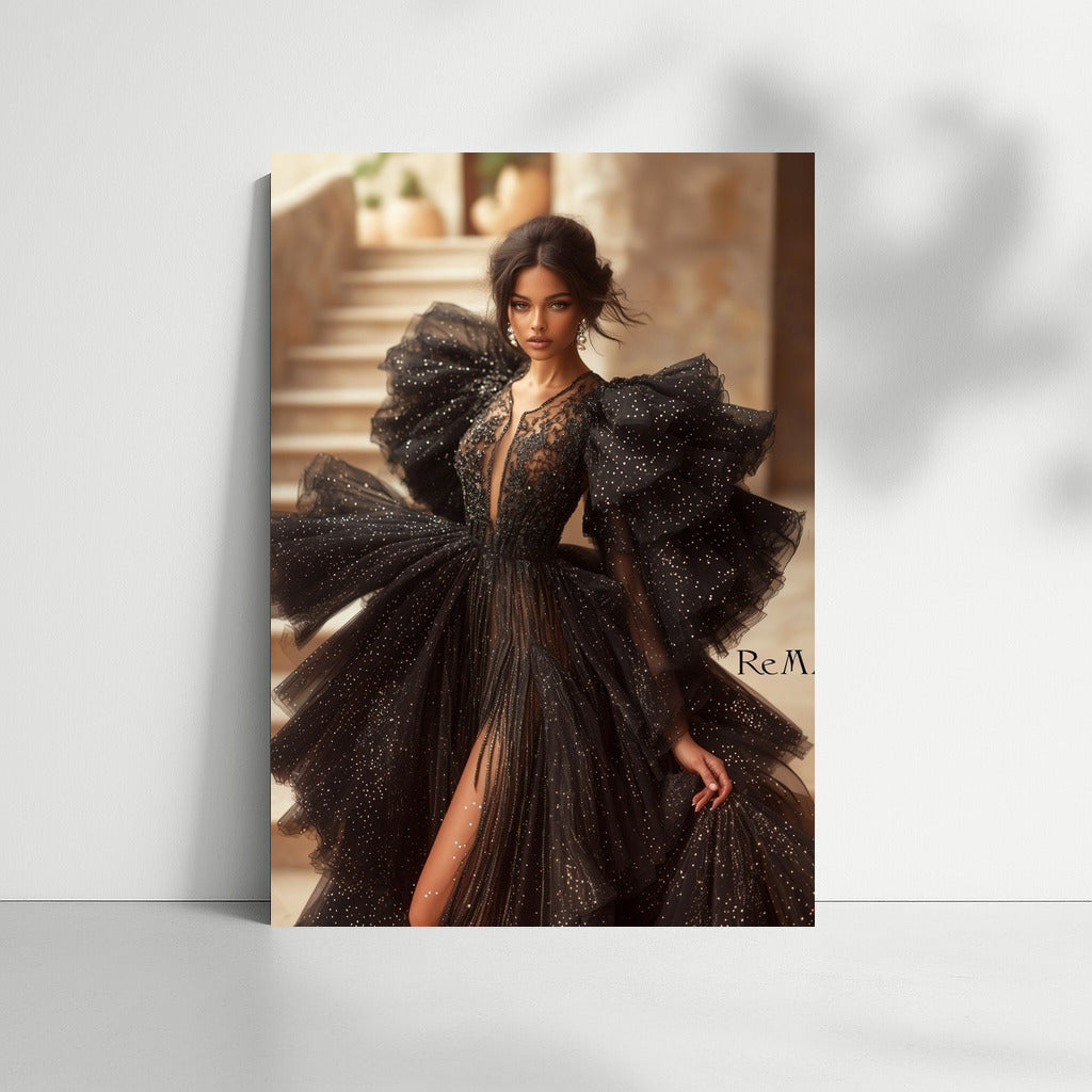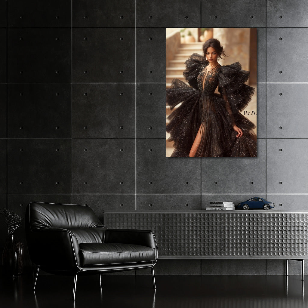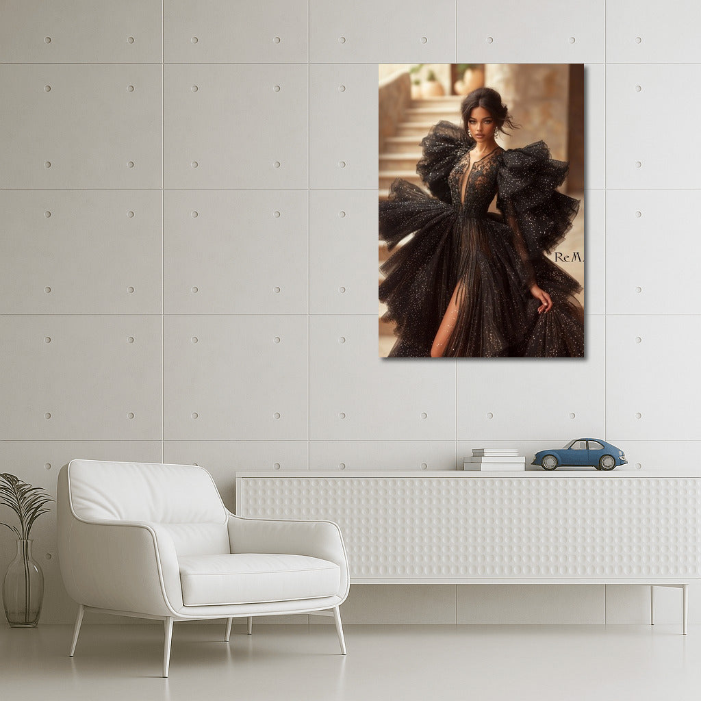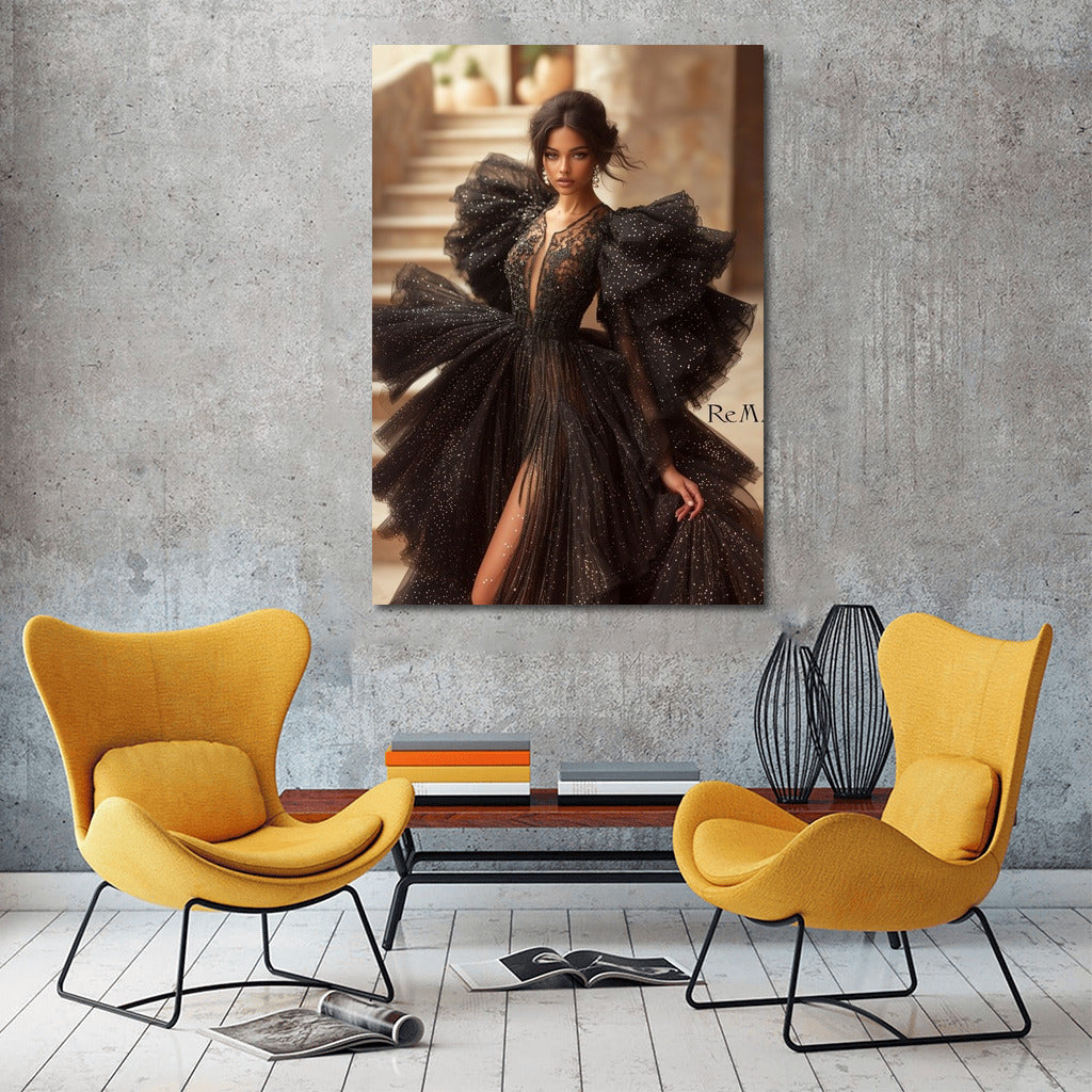 Elegant painting of a girl in a star dress. Exquisite wall art and a stylish accent for your interior. See more from the collection: Wall Art with Women