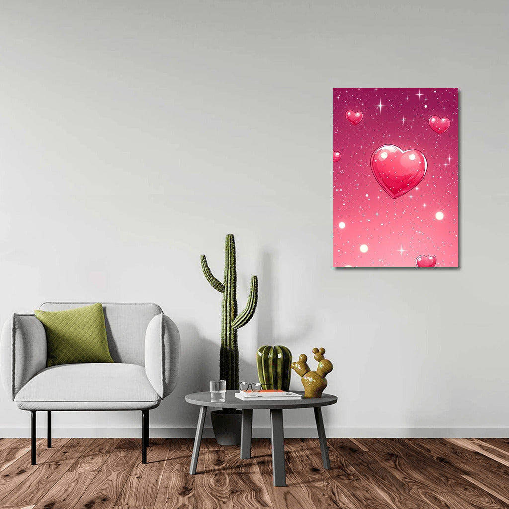 Romantic poster: shining hearts and stars create a magical atmosphere. Add some love to your wall! ❤️✨ See more from the collection: Love Art