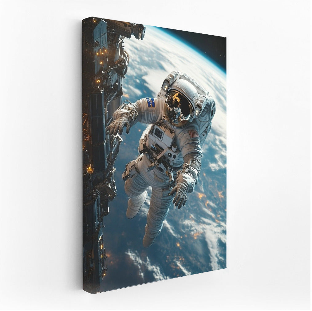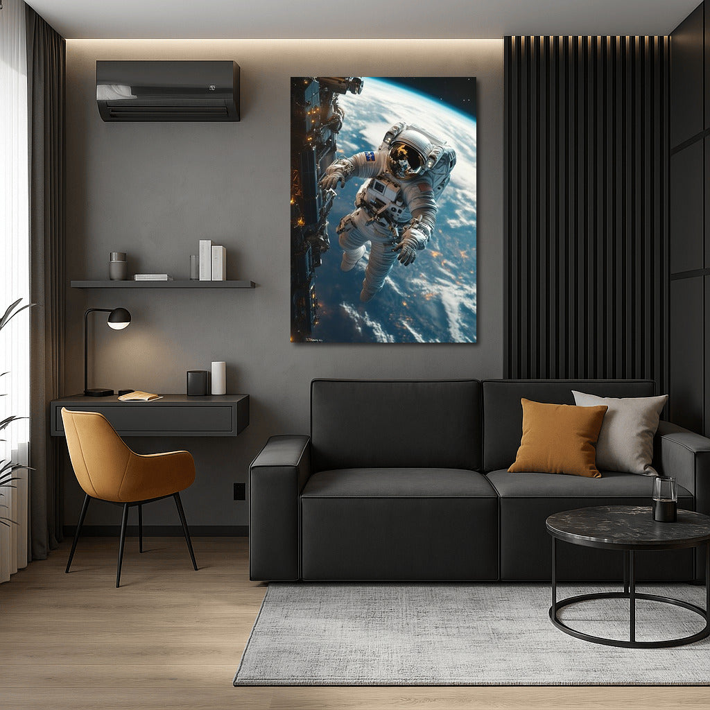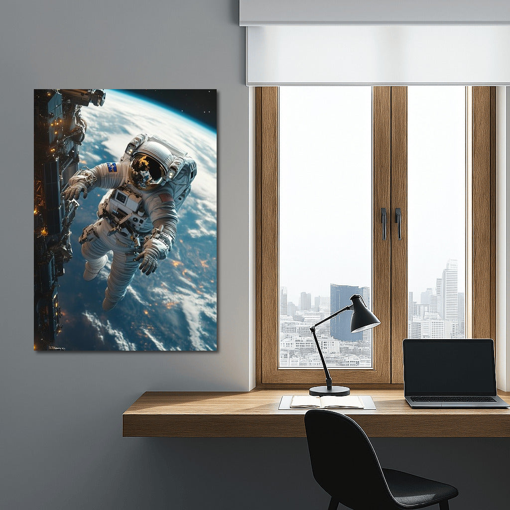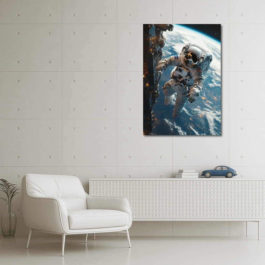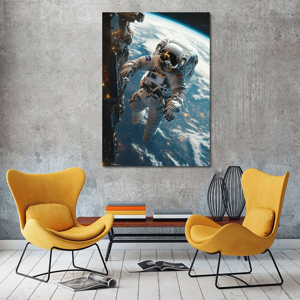 Space poster with astronaut in orbit, inspiring wall art for those who dream of stars and infinity. See more from the collection: Space & Astronomy Art