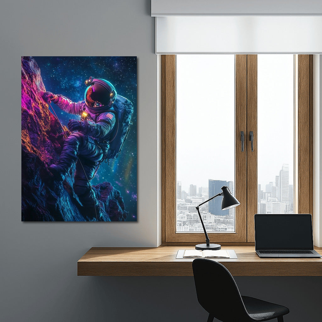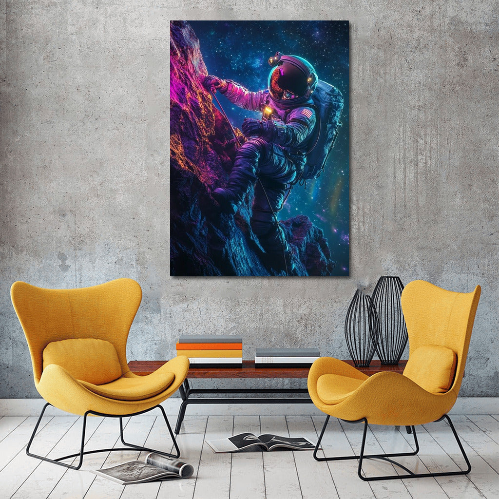 Space is calling! This poster with an astronaut conquering the starry peaks will add fantasy and inspiration to your wall art. See more from the collection: Space & Astronomy Art