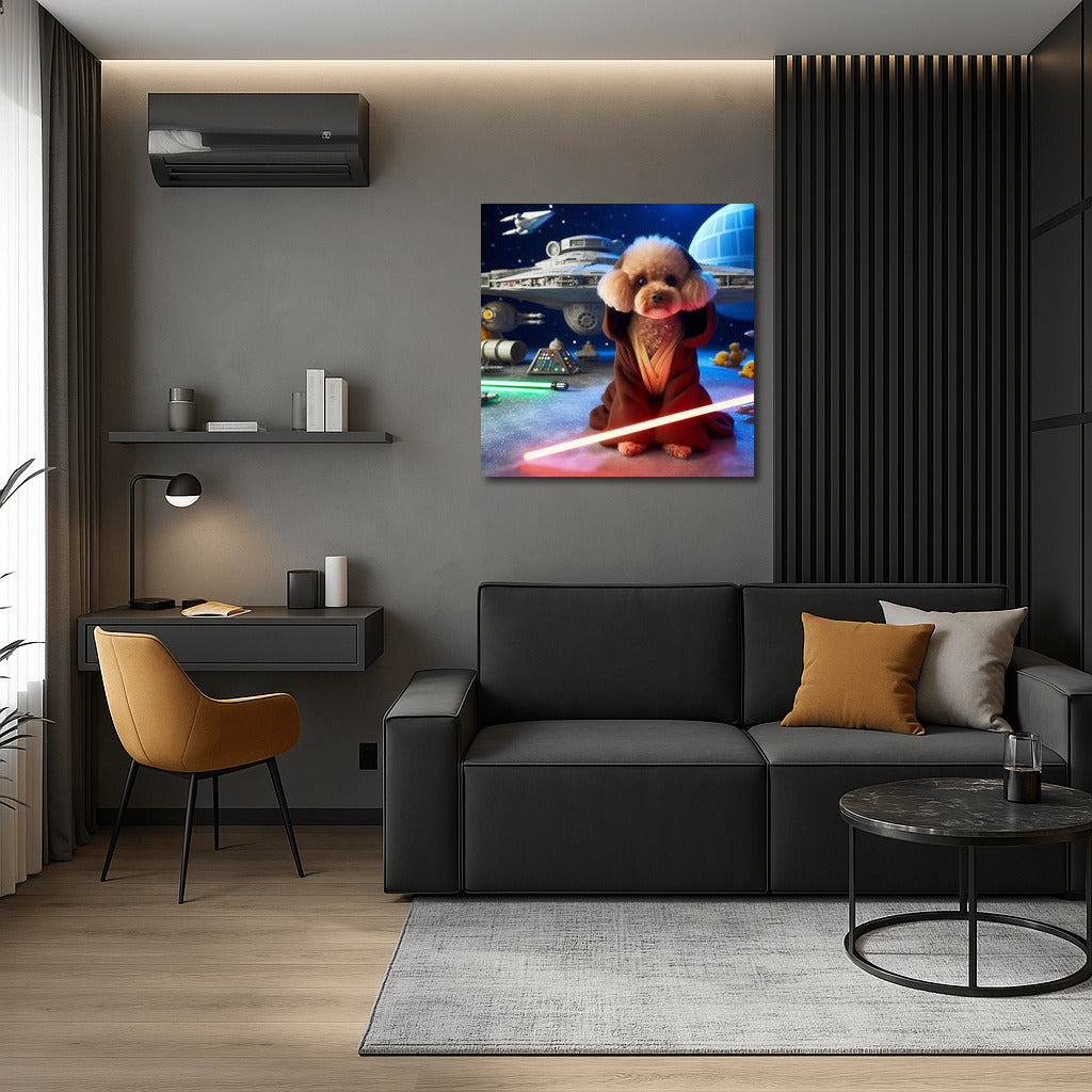 Star Poodle Jedi with Laser Sword near Spaceship Wall Art