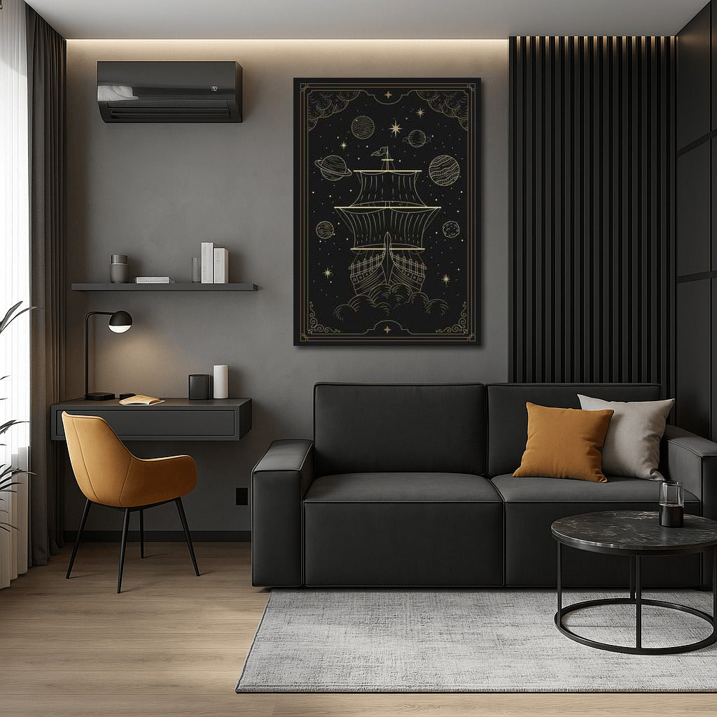 Space travel begins! Wall art with a sailboat among the stars for dreamers and adventurers. See more from the collection: Zodiac Sign & Astrology Art